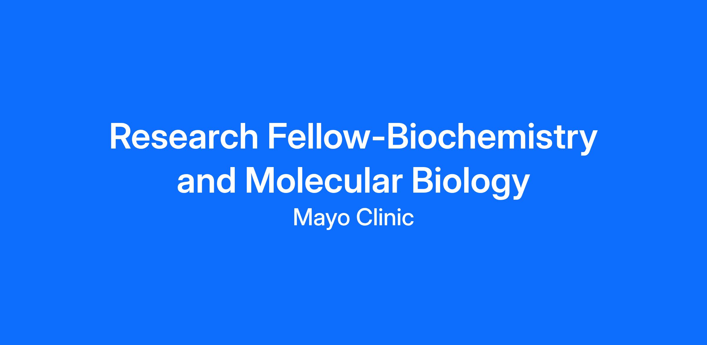 Must have a Ph.D., M.D., or equivalent doctoral degree in a field deemed relevant by the program. Research Fellow is appropriate for individuals who have completed no more than one prior postdoctoral fellowship, at Mayo Clinic or elsewhere.