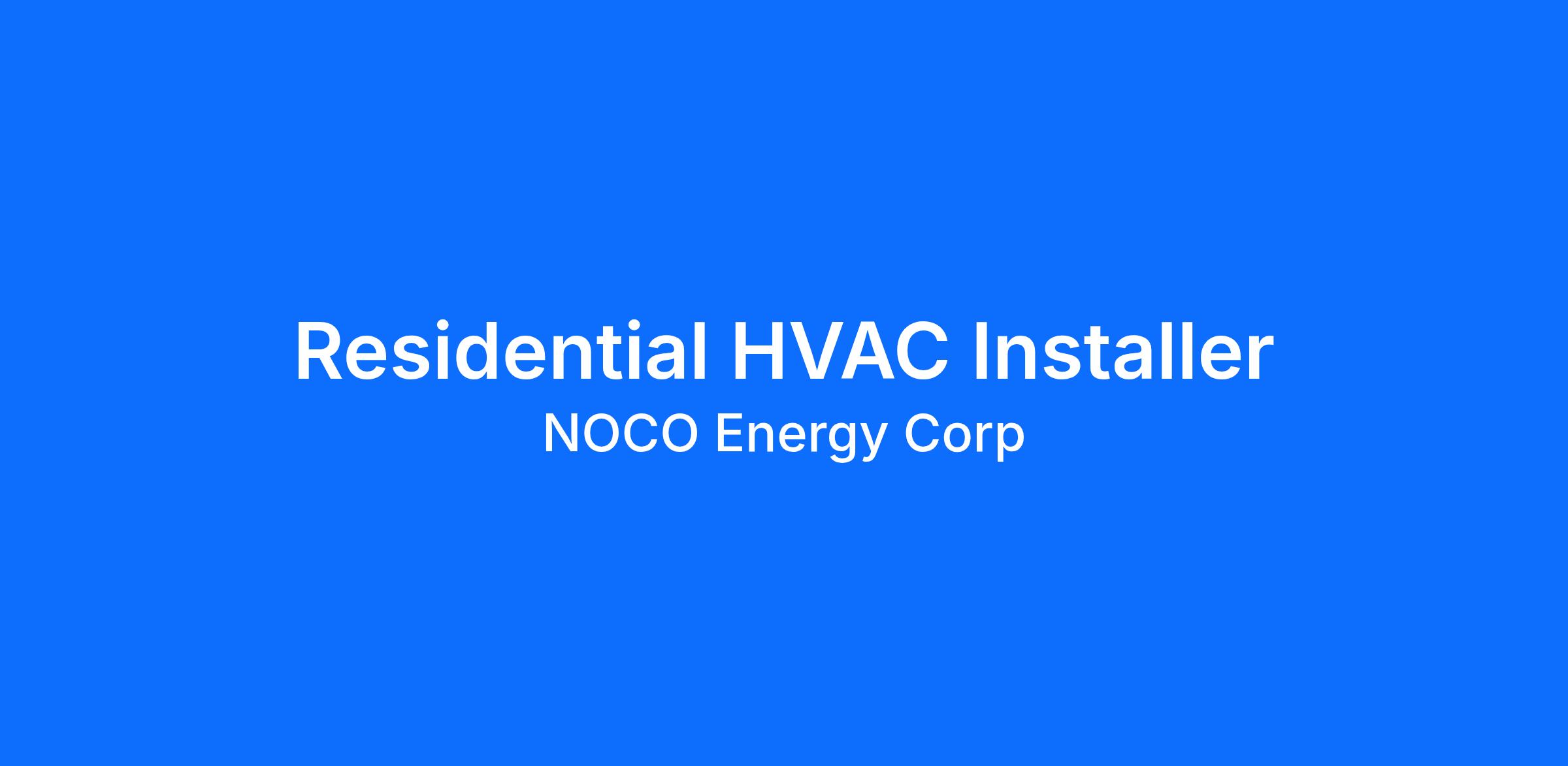 NOCO is looking to hire experienced, detail-oriented residential HVAC Installers to join our growing team. Installers will be skilled in installing residential HVAC equipment. Strong customer service skills are required.