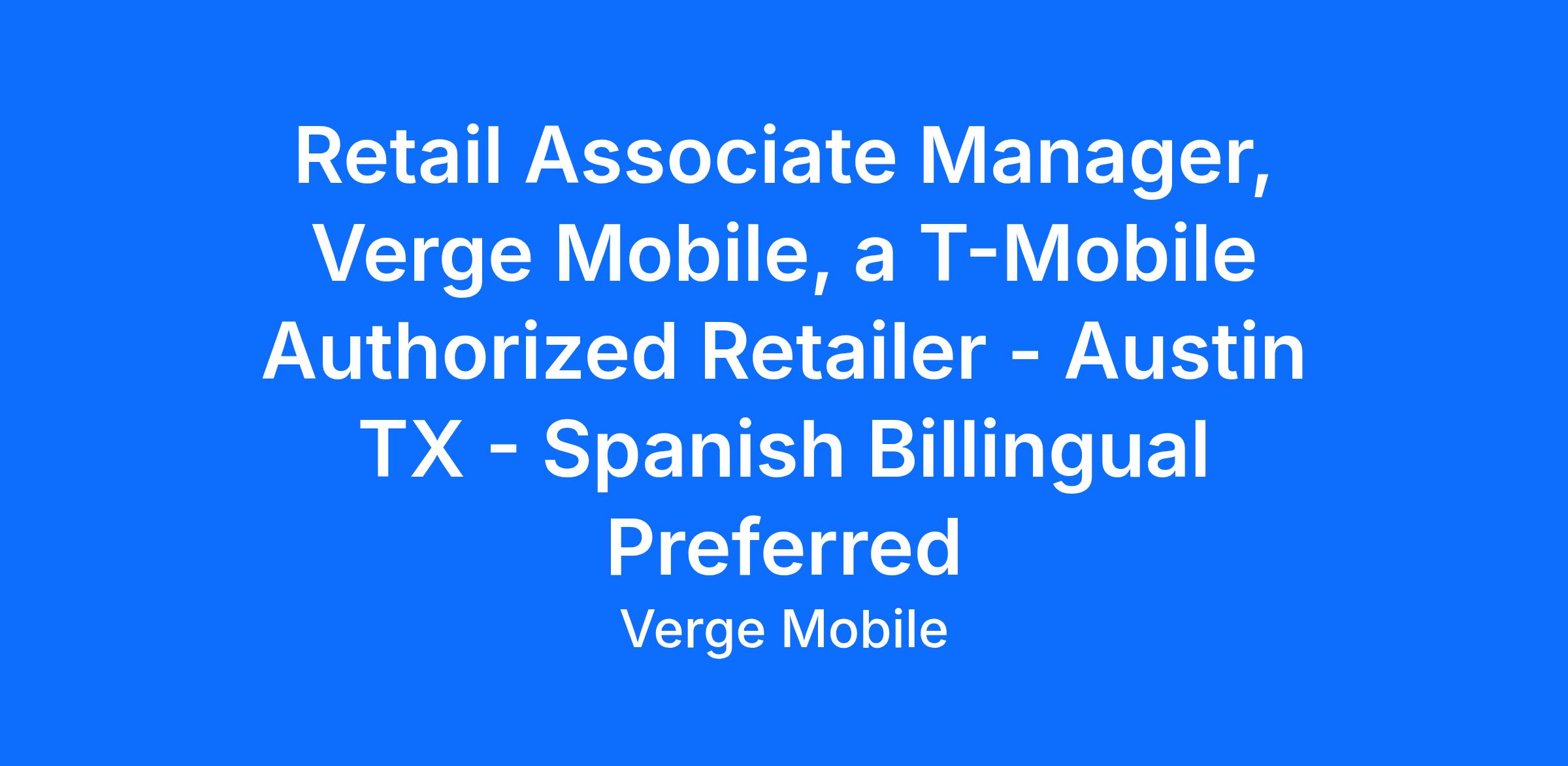Retail Associate Manager – Verge Mobile, a T-Mobile Authorized Retailer