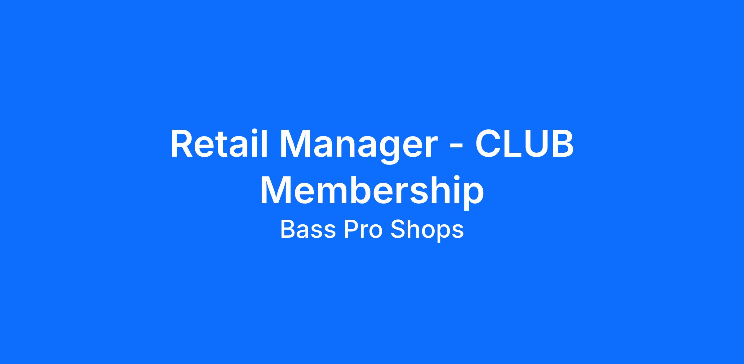 This Retail Manager position for our Bass Pro Shops and Cabela’s CLUB program is a unique position in our retail locations. The Bass Pro Shops and Cabela’s CLUB is a comprehensive customer loyalty program that allows customers to better connect with our company and the outdoors. As a salaried member of the leadership team your day will vary from your primary role of overseeing and driving the Bass Pro Shops and Cabela's CLUB credit program and CLUB customer experience culture throughout the store, to supporting the entire team during your Manager on Duty shifts.