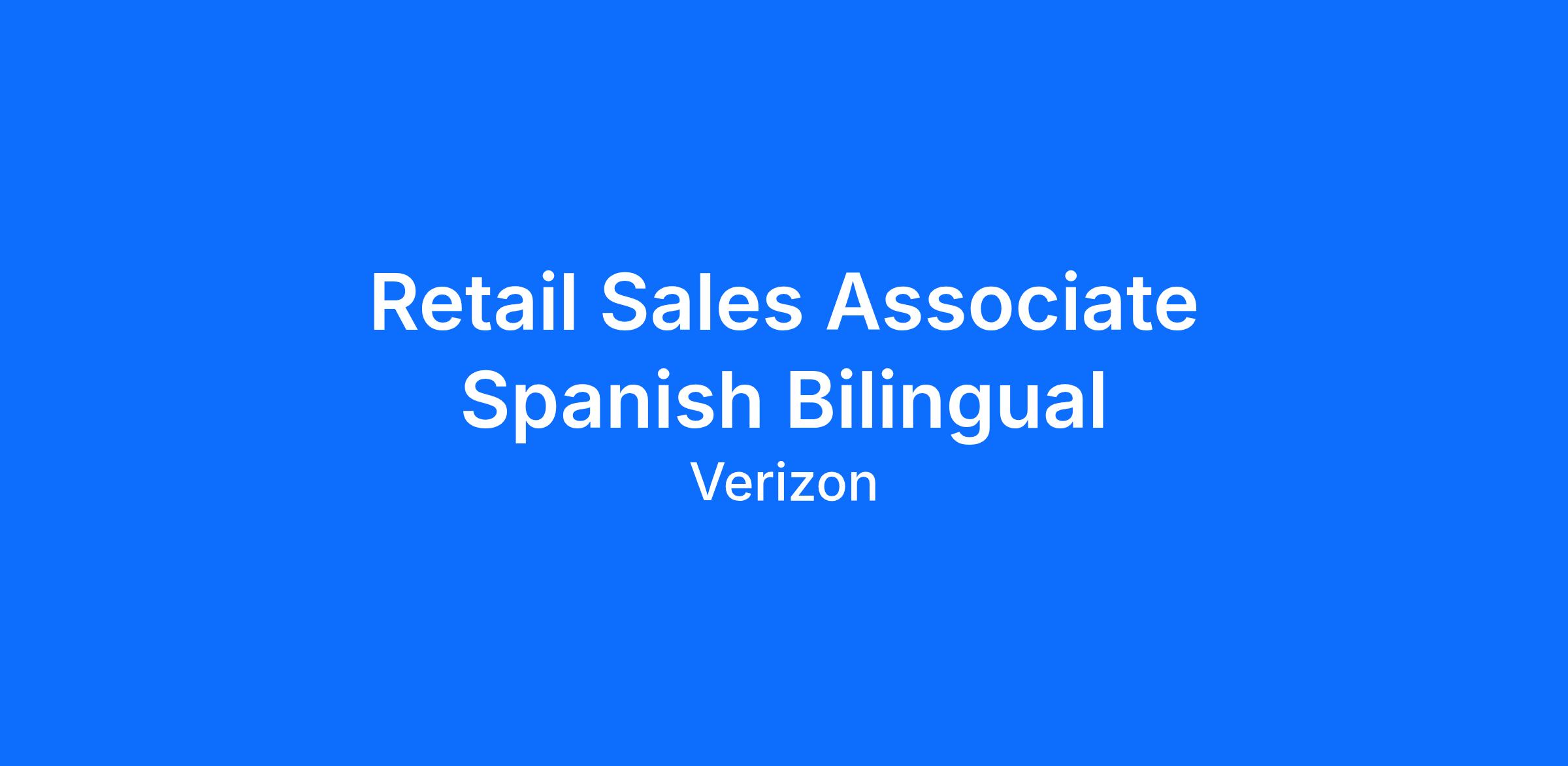 Bilingual fluency in English and the following language(s) are required: SpanishVerizon is an equal opportunity employer. We evaluate qualified applicants without regard to veteran status, disability or other legally protected characteristics.