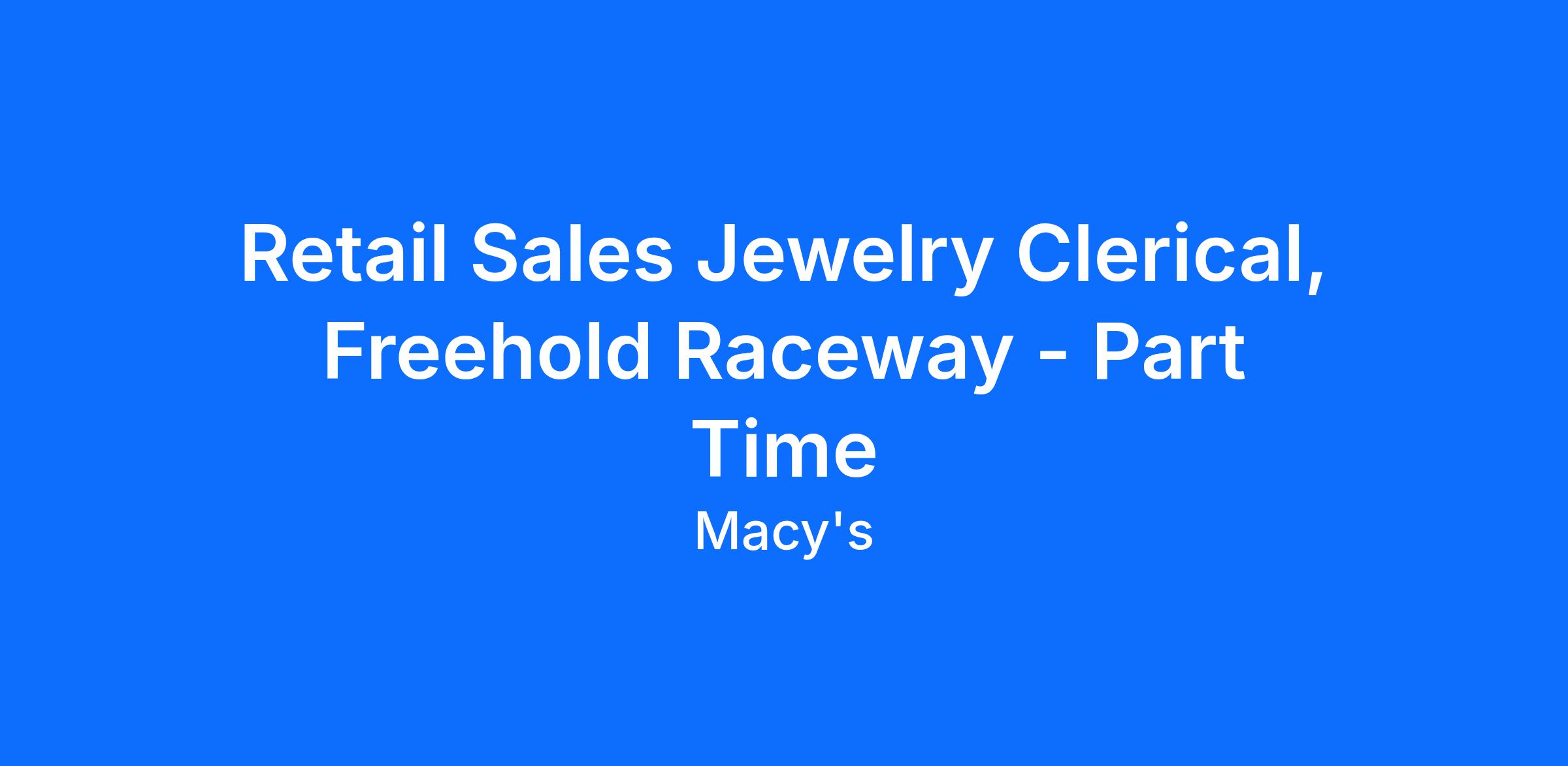 Retail Sales Jewelry Clerical, Freehold Raceway - Part Time