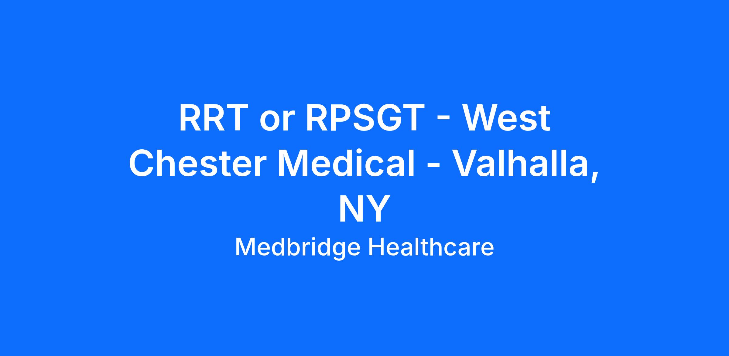 MedBridge Healthcare, LLC is seeking an experienced Full Time RPSGT to work in Valhalla, NY. The position will provide sleep services 3-4 nights per week from 8:00PM-6:00AM. Competitive hourly rates available depending on experience.