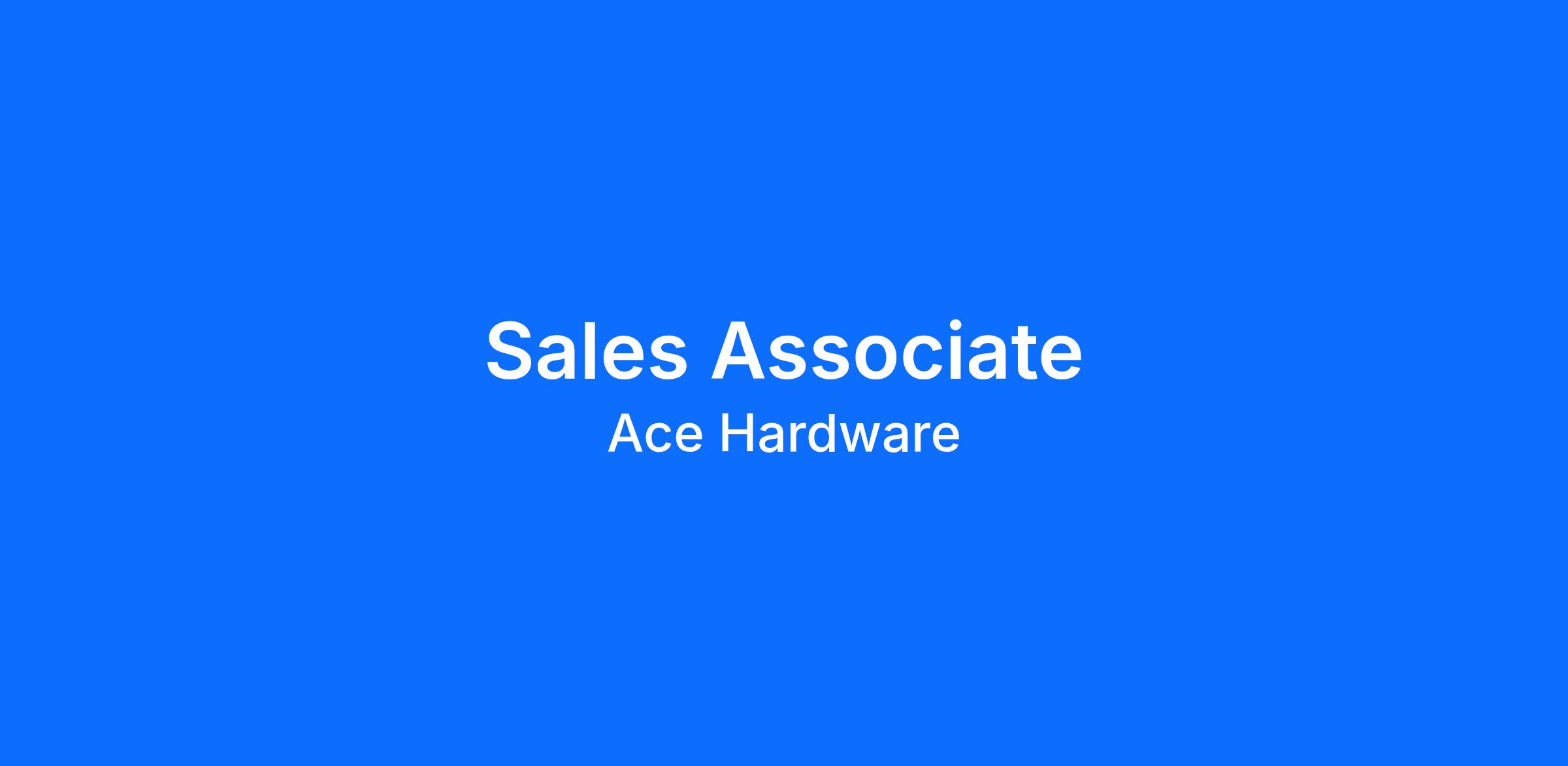 Ace Hardware is an Equal Opportunity Employer and a Drug-Free environment. Ace goes beyond hardware: build a future, a purpose, and a community with us.