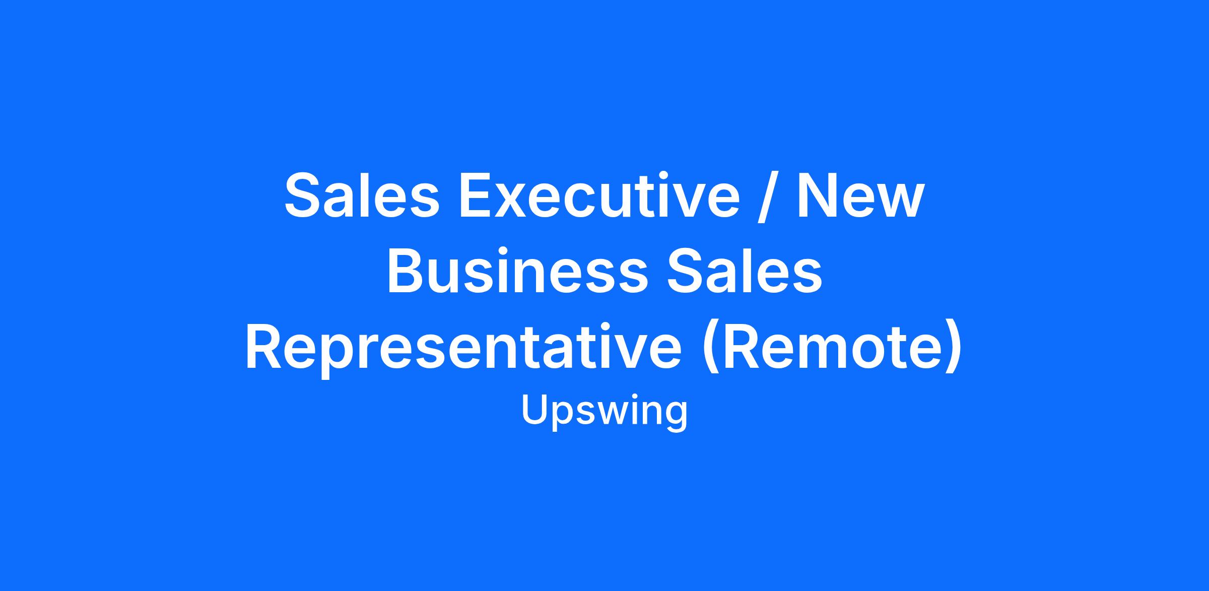 Overview: Upswing is expanding and looking to hire two Sales Executives / New Business Sales Representatives to drive our growth in the Central and East territories. Although remote, we are open to candidates living anywhere in the US.