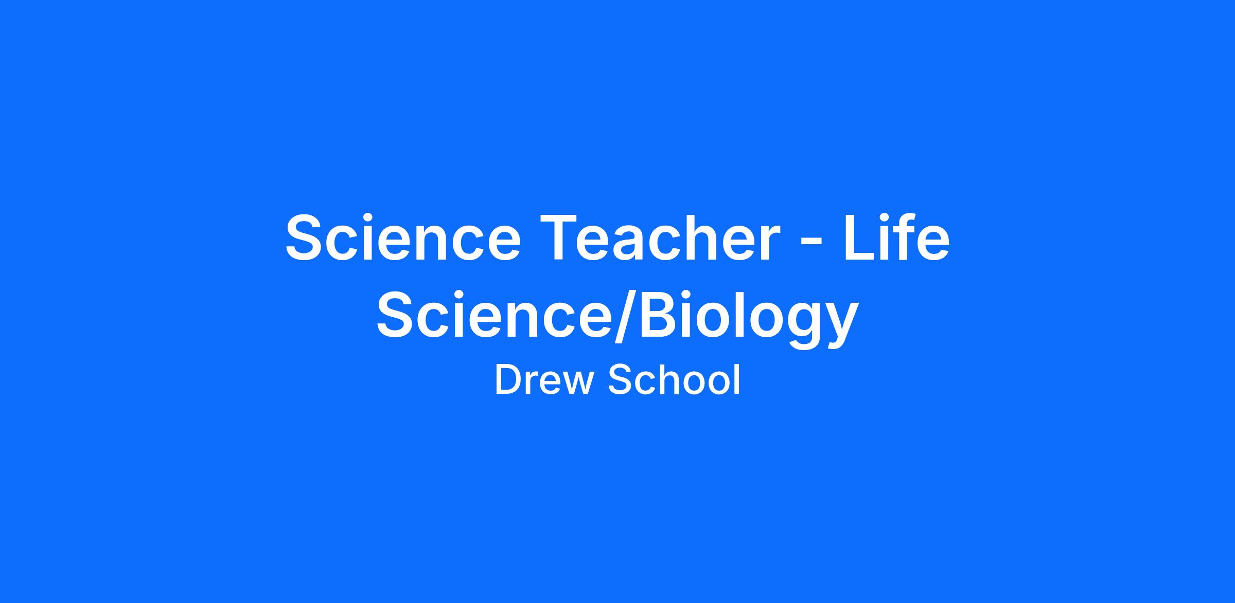Drew School seeks a full-time Science teacher for the 2026-2027 school year. We seek a teacher who has experience teaching Life Science/Biology. We seek an educator who will be a collegial, collaborative, and supportive school community member.