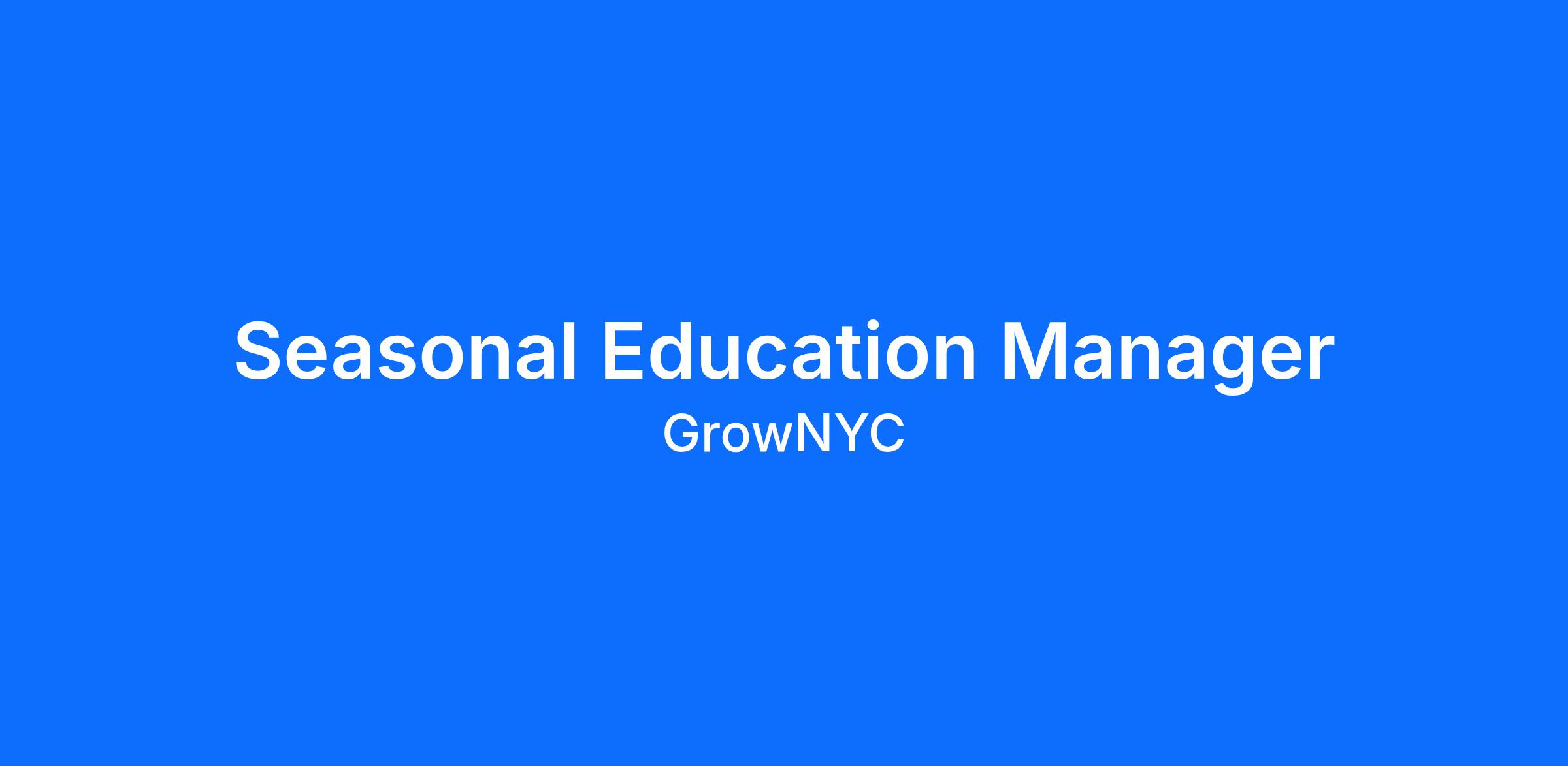 The Seasonal Education Manager will lead and manage a 6-week summer program for 10-15 participants ages 16-19, focused on GrowNYC’s core initiatives: food access, conservation, education, and green space. This role requires strategic planning, program implementation, and day-to-day coordination, including organizing field trips and professional development opportunities. The Seasonal Education Manager will directly supervise seasonal Youth Workforce Development interns, oversee recruitment and scheduling, and serve as the primary liaison with internal departments and external partners. The Education Manager will also contribute to GrowNYC’s food access education efforts by developing and expanding K-12 curricula for students and families.