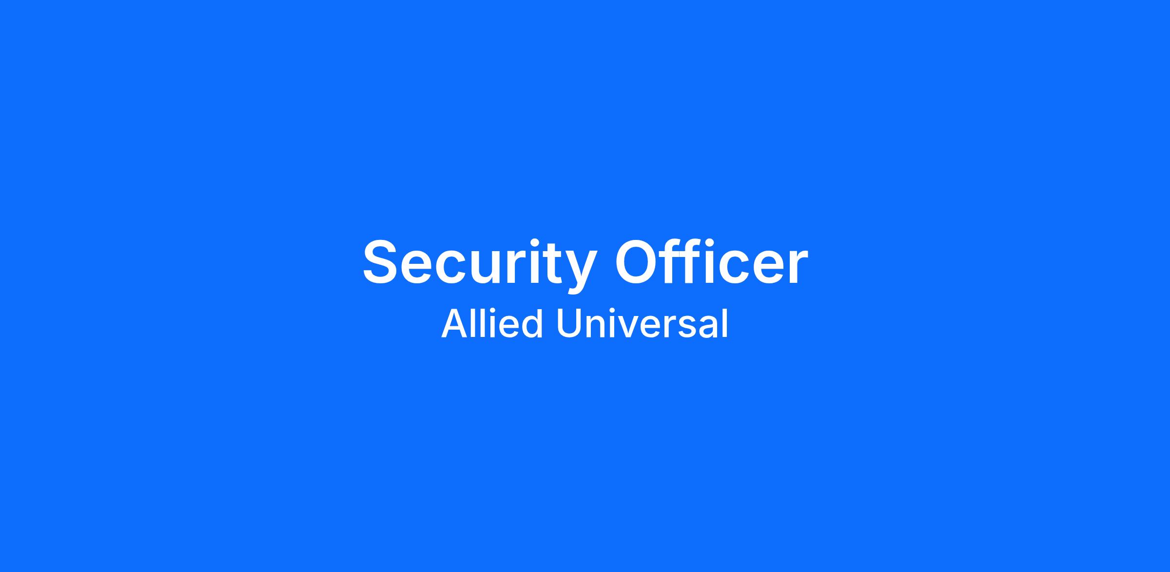 Allied Universal® is an Equal Opportunity Employer. All qualified applicants will receive consideration for employment without regard to race/ethnicity, age, color, religion, sex, sexual orientation, gender identity, national origin, genetic information, disability, protected veteran status or relationship/association with a protected veteran, or any other basis or characteristic protected by law. For more information: www.aus.com