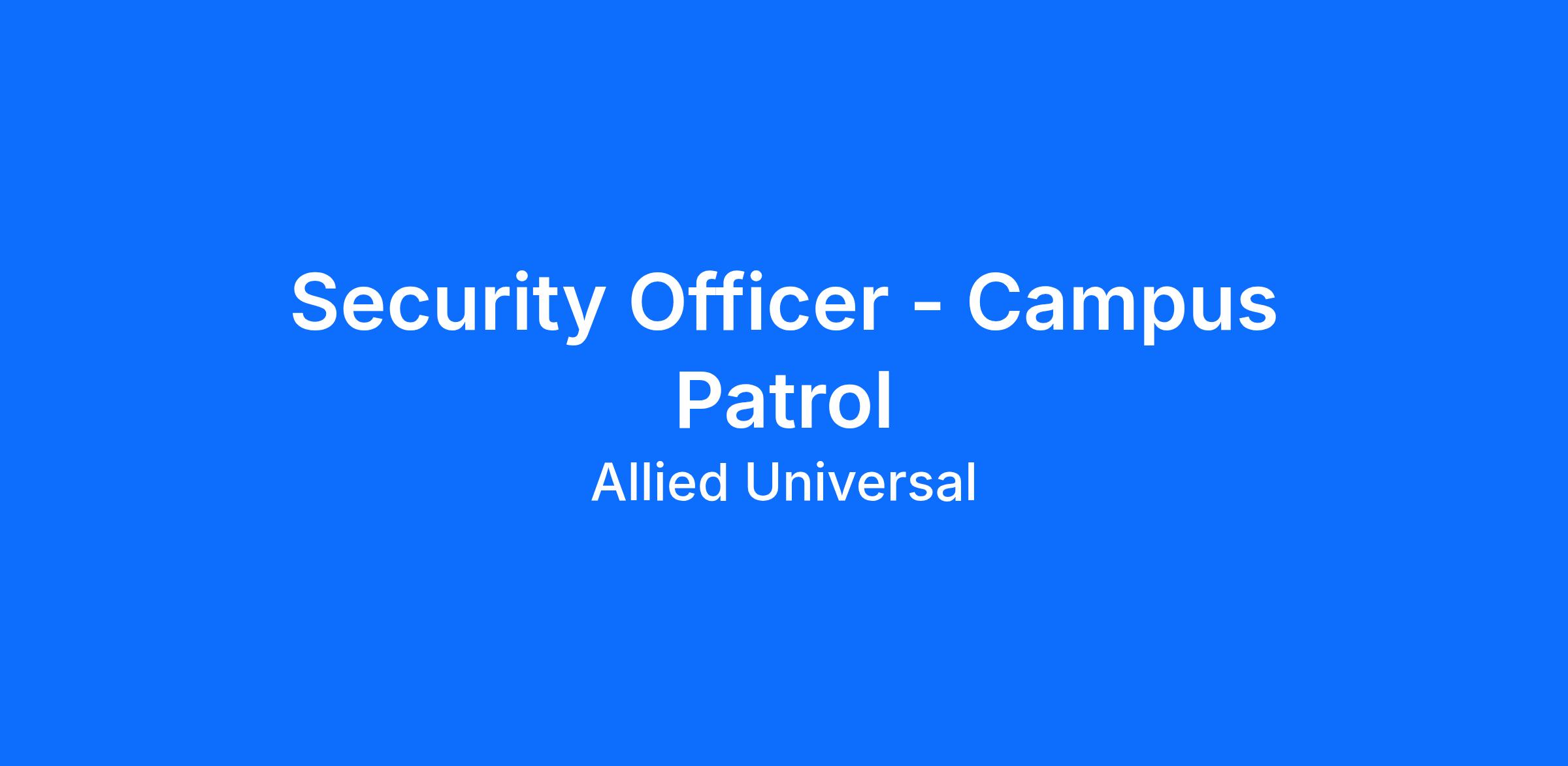 Allied Universal® is an Equal Opportunity Employer. All qualified applicants will receive consideration for employment without regard to race/ethnicity, age, color, religion, sex, sexual orientation, gender identity, national origin, genetic information, disability, protected veteran status or relationship/association with a protected veteran, or any other basis or characteristic protected by law. For more information: www.aus.com.