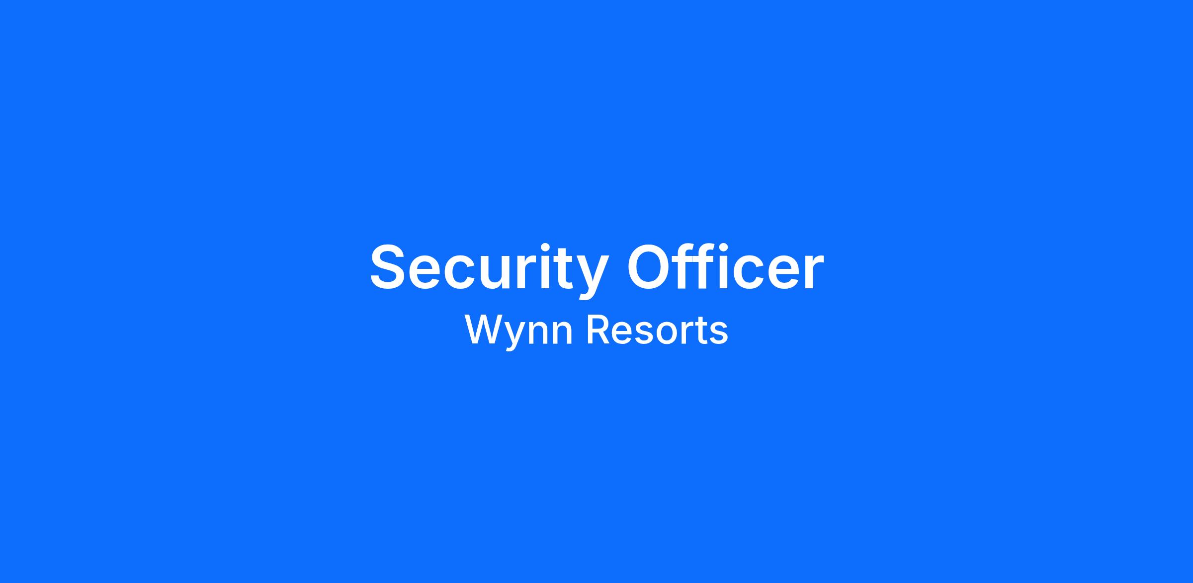 Security Officers are responsible for the safety of patrons, employees and the Wynn and Encore Property. In addition, Security Officers are responsible for ensuring all laws and policies are followed while being responsible for creating a positive guest experience by adhering to the Forbes five-star standards and the Wynn and Encore Core Values and Behaviors.