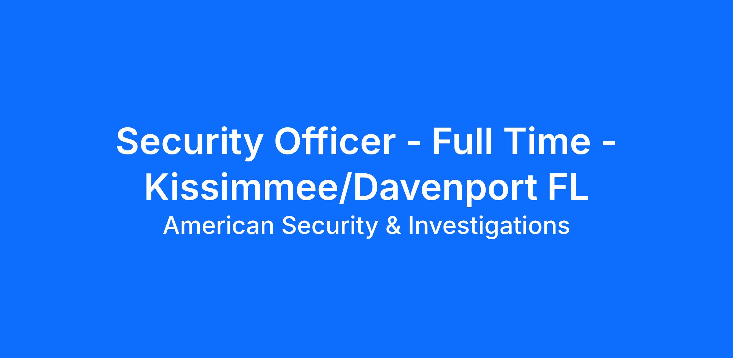 Security Officer at American Security & Investigations in Kissimmee/Davenport FL
