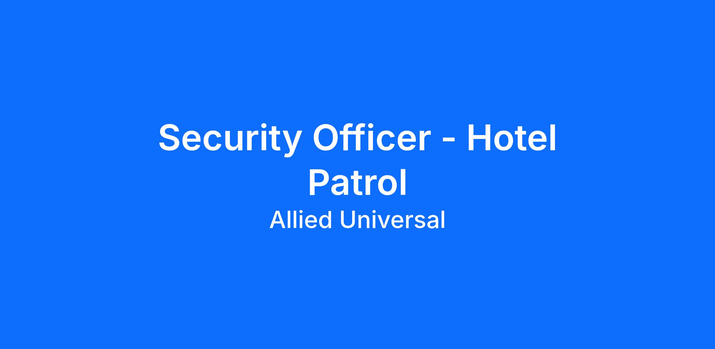 As a Security Officer - Hotel Patrol in San Antonio, TX, you will serve and safeguard clients in a range of industries such as Hotels & Resorts, and more. Join a leading team where flexibility meets opportunity. As a Part-Time Security Officer, you can build a schedule that works for you and explore new roles using our Claim a Shift platform. Learn more: aus.com/earnmore. As an unarmed patrol officer at a busy hotel and resort location, you will monitor and patrol assigned areas, complete routine rounds, and stay highly visible to help to deter security-related incidents. You will greet guests and staff, respond to calls for assistance, document observations, and communicate clearly with your team. At Allied Universal, you will support a caring culture that puts people first, delivering through teamwork with integrity, agility, reliability, and innovation.