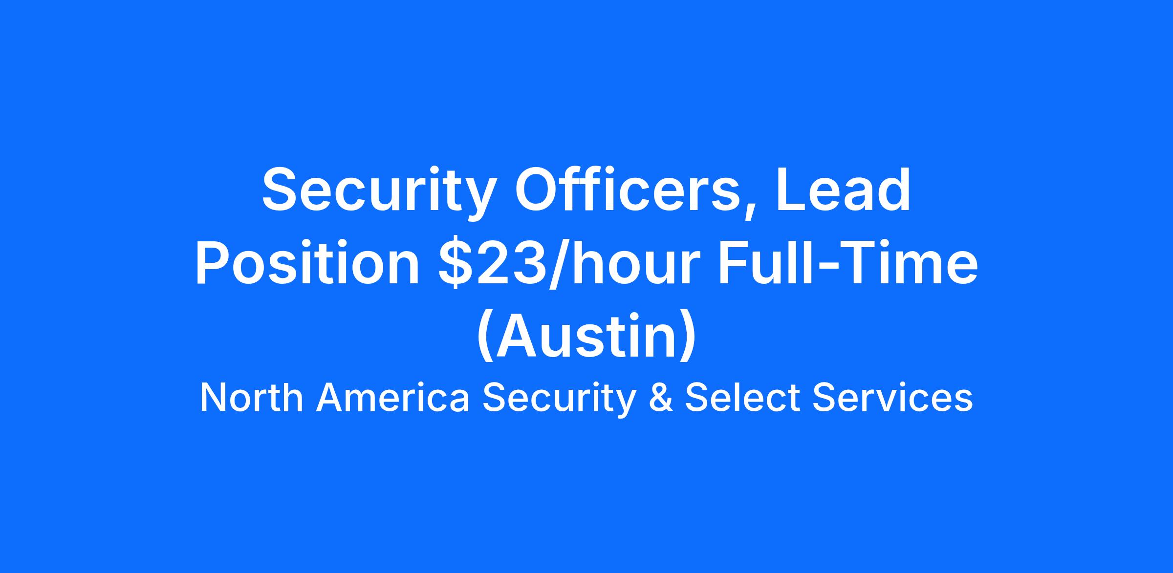 Job Title: Security Officers, Lead Position $23/hour Full-Time (Austin)