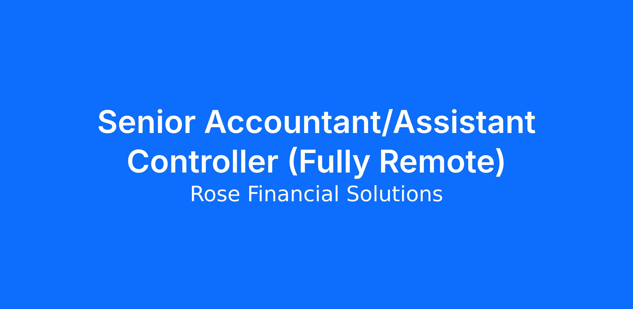 Senior Accountant/Assistant Controller (Fully Remote)