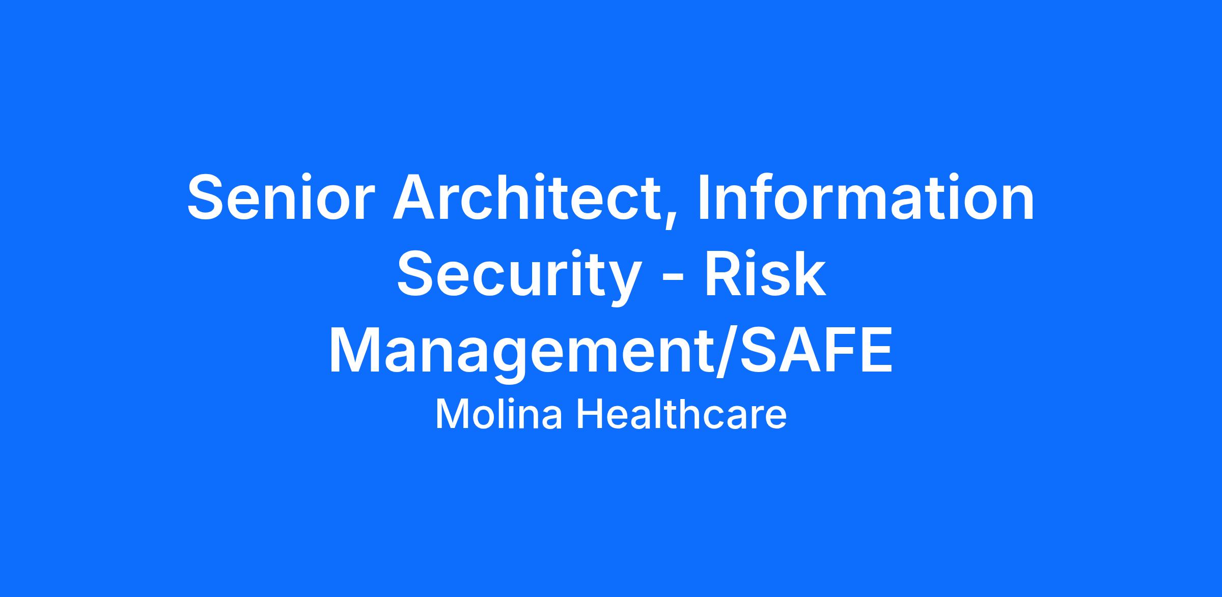 The Senior Architect, Information Security serves as a senior level security risk management leader responsible for identifying, assessing, monitoring, and improving the management of information security risks across the Molina enterprise. The role leverages the SAFE security platform to provide ongoing visibility into first and third party risk posture, remediation progress, and enterprise risk trends.