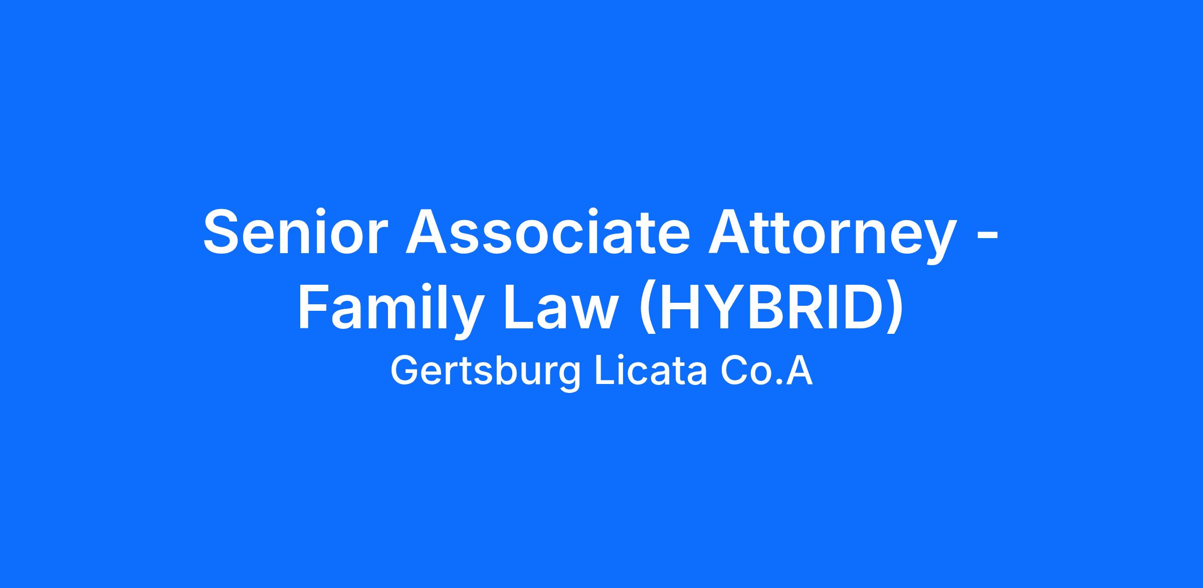 Our client, a well-established family law firm, is seeking a Senior Associate Attorney to join their team. The ideal candidate will have significant experience representing clients in complex family and matrimonial matters, including divorce, custody, alimony/spousal support, child support, and related proceedings.
