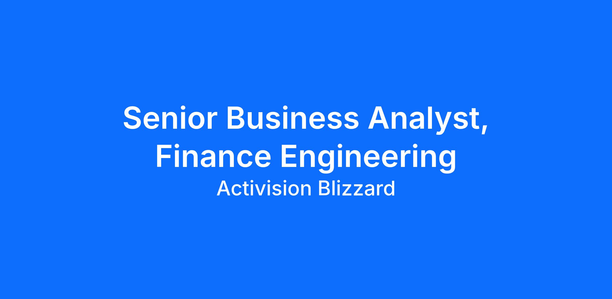 Activision Blizzard is looking for a talented and enthusiastic Senior Business Analyst to join our Finance Engineering team to help define and deliver business and technology priorities. This individual will support key initiatives by analysing business needs, translating requirements into effective system solutions, and supporting delivery, adoption, and ongoing operational effectiveness