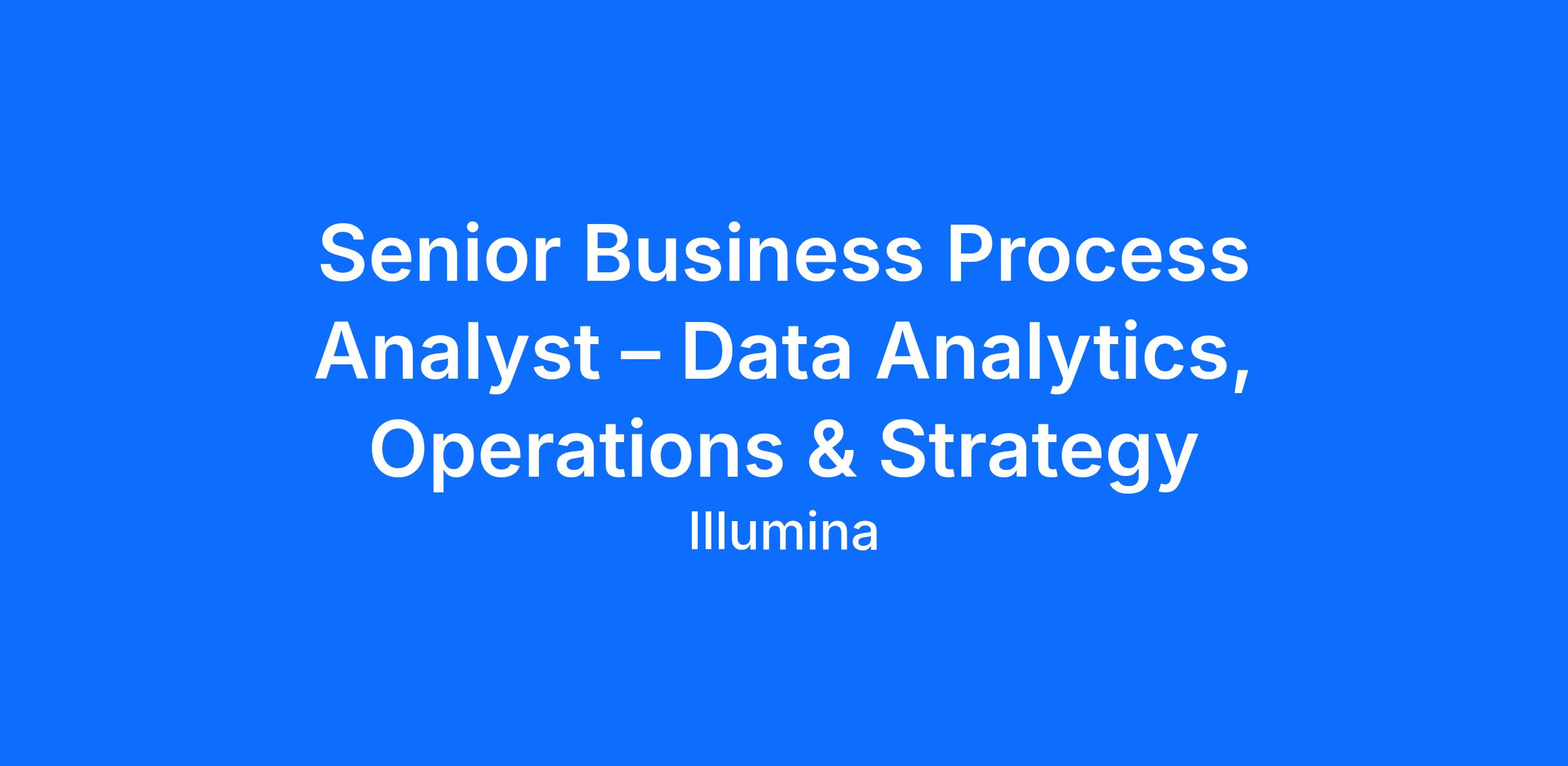 The estimated base salary range for the Senior Business Process Analyst – Data Analytics, Operations & Strategy role based in the United States of America is: $90,000 - $135,000. Should the level or location of the role change during the hiring process, the applicable base pay range may be updated accordingly. Compensation decisions are dependent on several factors including, but not limited to, an individual’s qualifications, location where the role is to be performed, internal equity, and alignment with market data. Additionally, all employees are eligible for one of our variable cash programs (bonus or commission) and eligible roles may receive equity as part of the compensation package. We offer a wide range of benefits as innovative as our work, including access to genomics sequencing, family planning, health/dental/vision, retirement benefits, and paid time off.