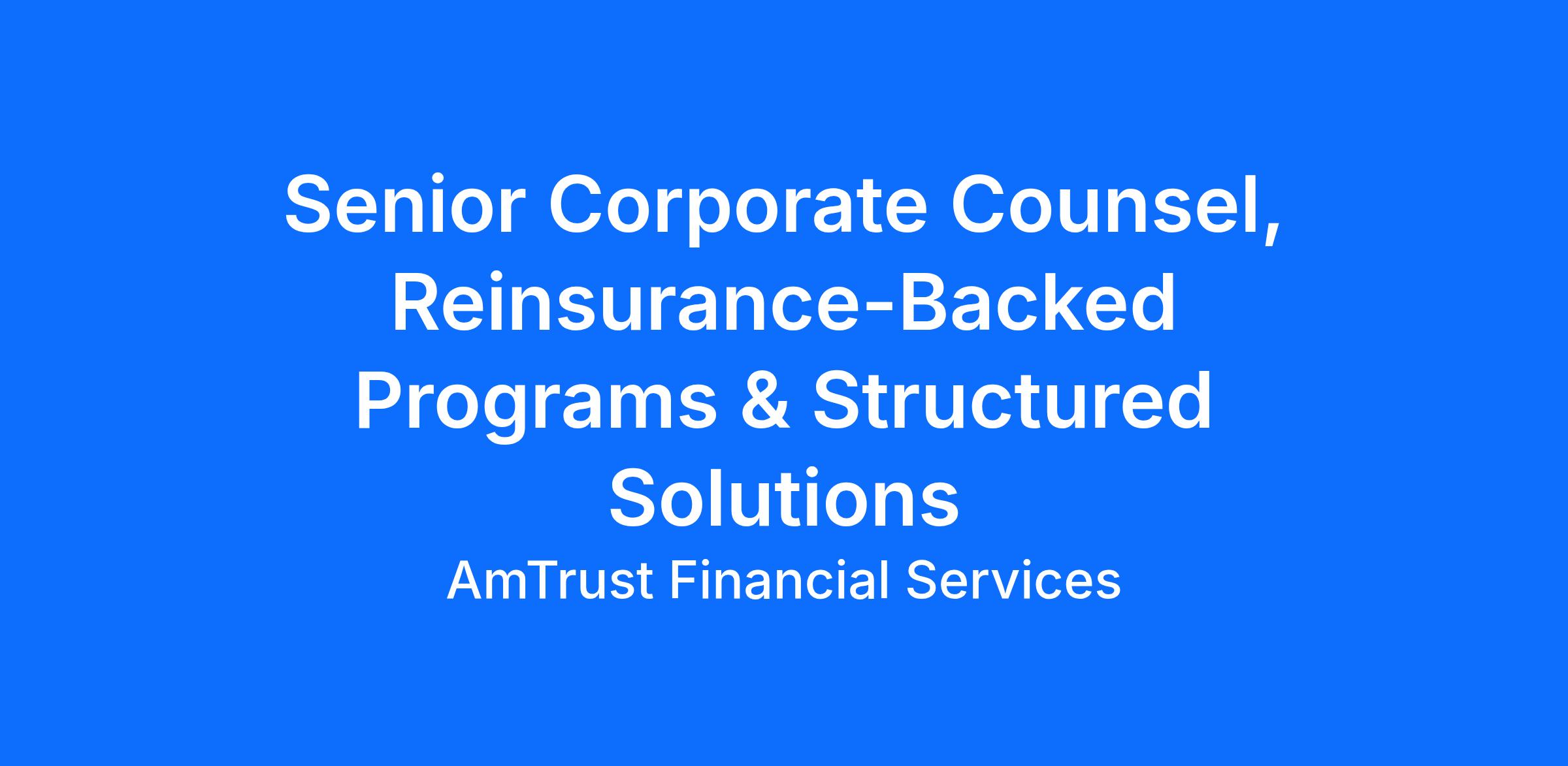 The [Senior] Corporate Counsel will primarily serve as a senior legal advisor supporting AmTrust Risk Solutions’ reinsurance-backed and structured program business. This role is responsible for structuring, drafting, reviewing, and negotiating complex program-related agreements and ensuring that all legal documentation operates cohesively across underwriting, reinsurance, operations, and finance. In addition, the [Senior] Corporate Counsel will support AmTrust’s core domestic insurance businesses, draft and negotiate relevant agreements and provide regulatory guidance.