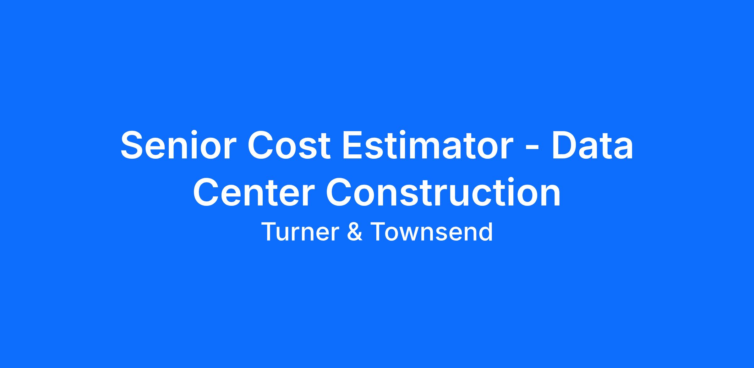 Turner & Townsend is seeking an experienced Senior Cost Estimator to support a high‑profile client’s large‑scale, multi‑billion‑dollar data center construction portfolio. You’ll contribute to multi‑building campus developments, new greenfield facilities, and major expansion programs within a single, complex program of work. The role requires strong estimating capability, comfort operating in fast‑moving environments, and experience supporting multi‑phase delivery across major capital projects.
