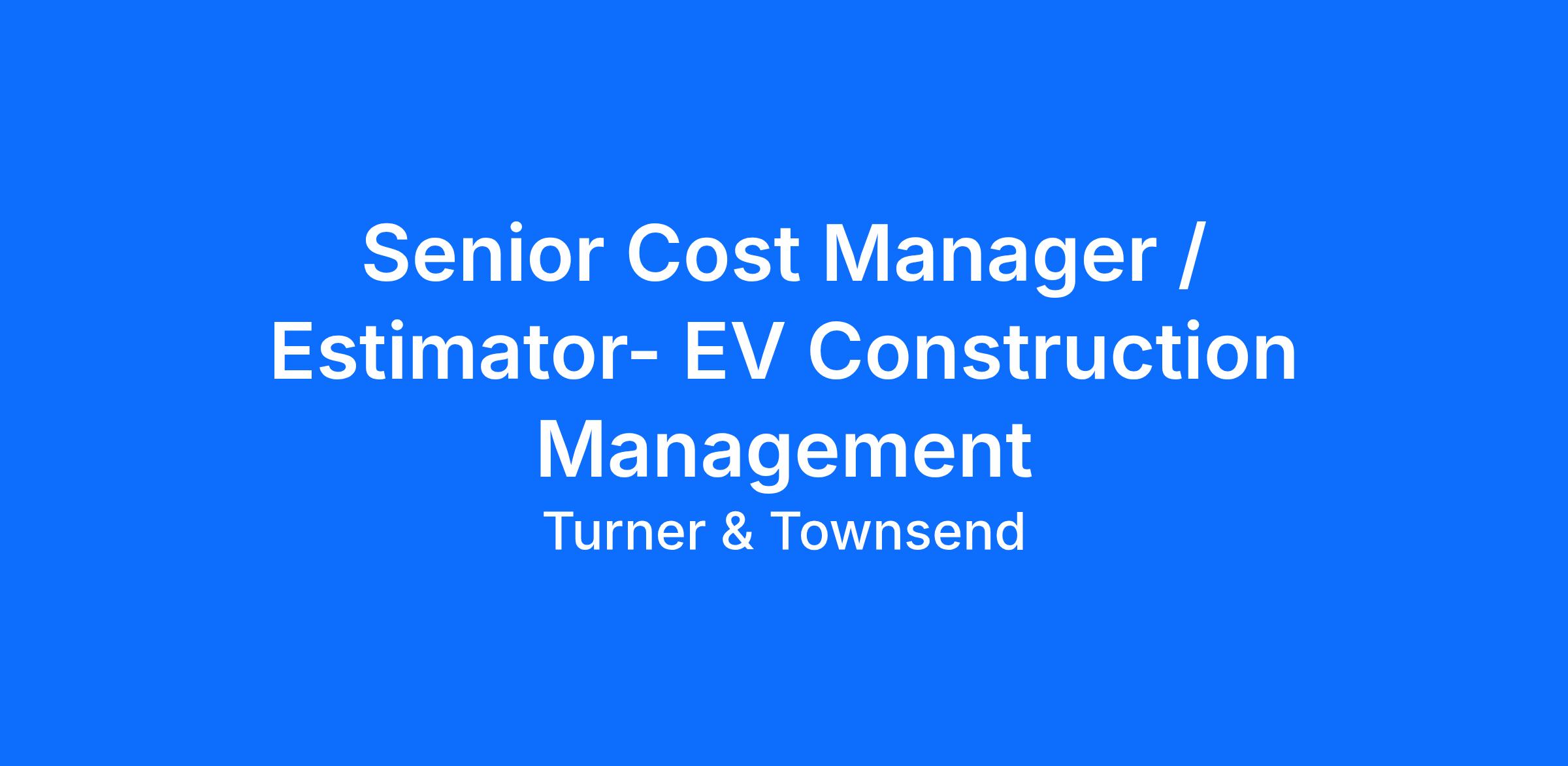 Turner & Townsend are looking for an experienced Senior Cost Manager/Estimator to act as the key, day to day client interface, ensuring that client objectives are met through the delivery of a value-added cost management service.