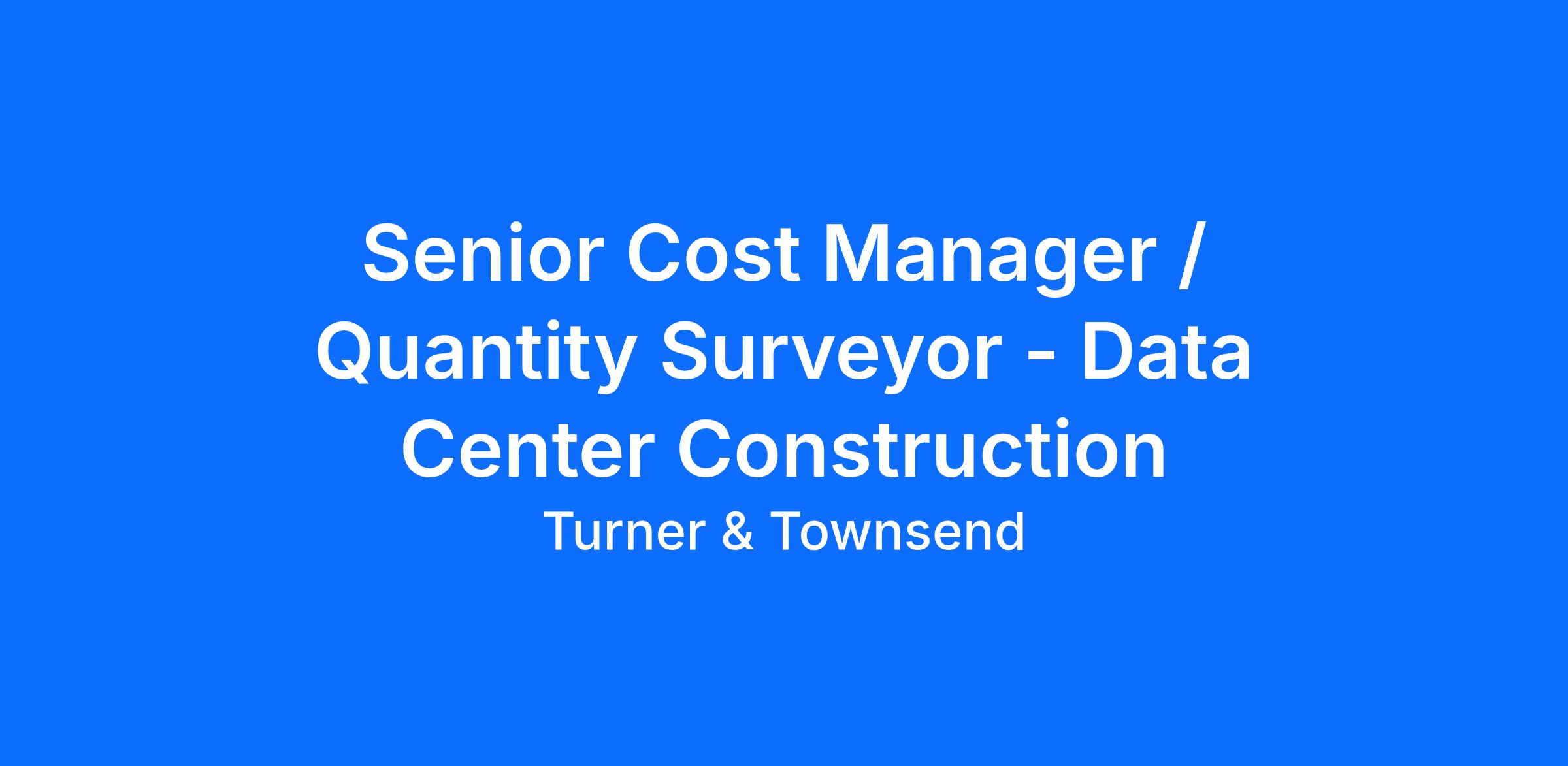 Turner & Townsend is seeking an experienced Senior Cost Manager / Quantity Surveyor to support a large data center development program in the Columbus, Ohio area. This role will serve as a key day‑to‑day client interface on a major, multi‑building hyperscale construction project. The program includes significant phased development, substantial construction volume, and coordination across design teams, contractors, and stakeholders throughout the project lifecycle.