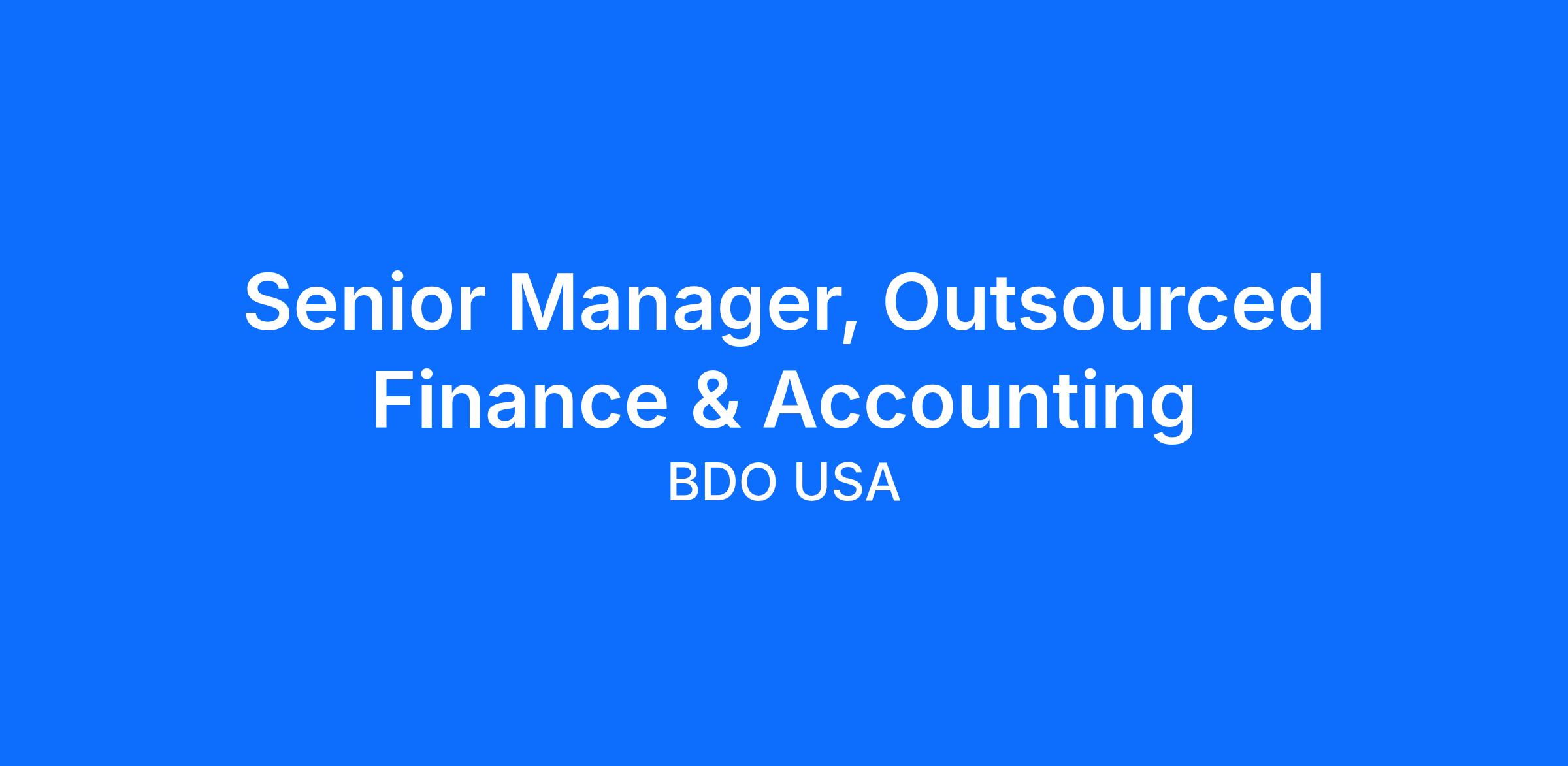 The Senior Manager, Outsourced Finance & Accounting acts as a leader within the AAO group and will be tasked with building a robust AAO practice. The Senior Manager, Outsourced Finance & Accounting will be responsible for providing exceptional client service and supervising the work products of other professionals on the client relationship team; developing new business and working with the business development and marketing teams as opportunities move through the pursuit process; mentoring and developing the interpersonal and technical skills of the other client relationship team members. The individual in this role will responsibly manage the AAO practice through mitigating risk and managing the financial performance of their respective client portfolio.