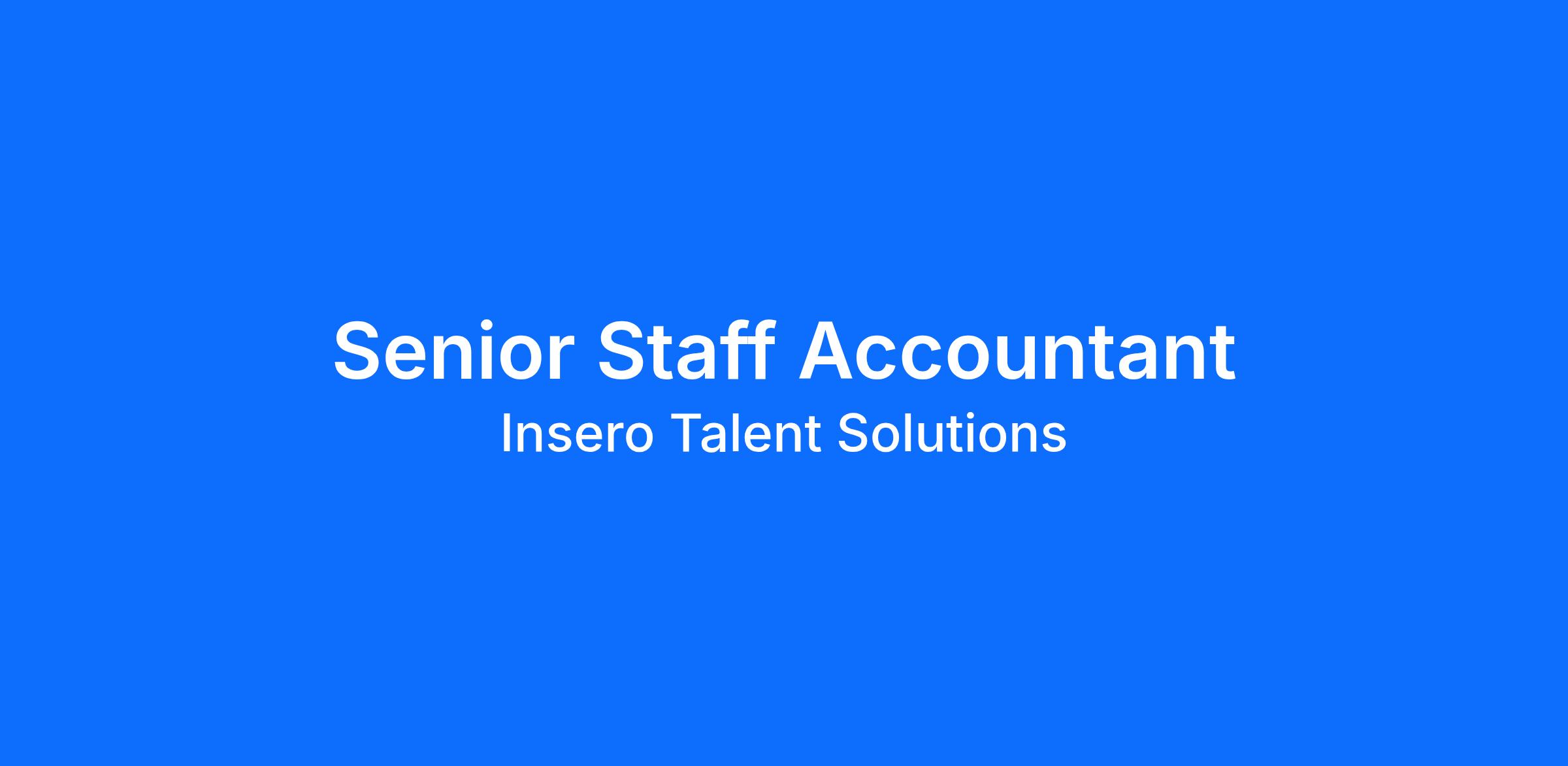Insero Talent Solutions is recruiting a Senior Staff Accountant for a food manufacturing company in Rochester, NY.