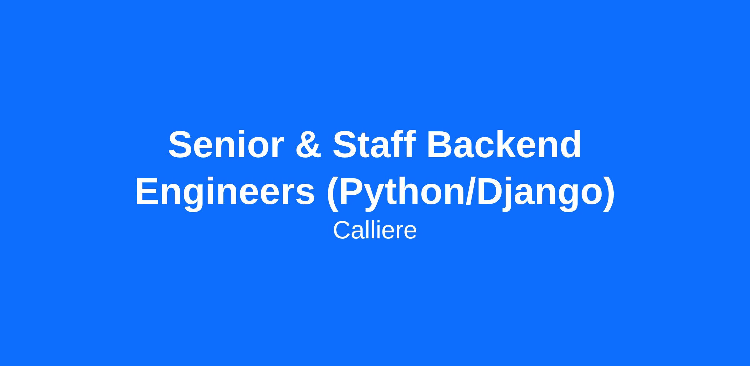 <\/html>"}}],"isMobile":false,"iframe":"true","jobType":"Full time","applyName":"Apply Now","zsoid":"688258619","FontFamily":"Verdana, Geneva, sans\-serif","jobOtherDetails":[{"fieldLabel":"Salary","uitype":1,"value":"Up to $220,000 USD + Amazing Perks."},{"fieldLabel":"Industry","uitype":2,"value":"Technology"},{"fieldLabel":"City","uitype":1,"value":"New York"},{"fieldLabel":"State\/Province","uitype":1,"value":"New York"},{"fieldLabel":"Zip\/Postal Code","uitype":1,"value":"10013"}],"headerName":"Senior & Staff Backend Engineers (Python\/Django)","widgetId":"531753000000072311","isJobBoard":"false","userId":"531753000000248003","attachArr":[],"customTemplate":"3","isCandidateLoginEnabled":false,"jobId":"531753000015892011","FontSize":"12","googleIndexUrl":"https:\/\/callieregroup.zohorecruit.com\/recruit\/ViewJob.na?digest=u6RCQRHkFYC6J5ac54igRVicPvVb.QI8H3N8SDJR8lQ\-&embedsource=Google","location":"New York","embedsource":"CareerSite","indeedCallBackUrl":"https:\/\/recruit.zoho.com\/recruit\/JBApplyAuth.do","logoId":"1gvk5a9fa9ad9912143c8885985d92ce2ae5f"}