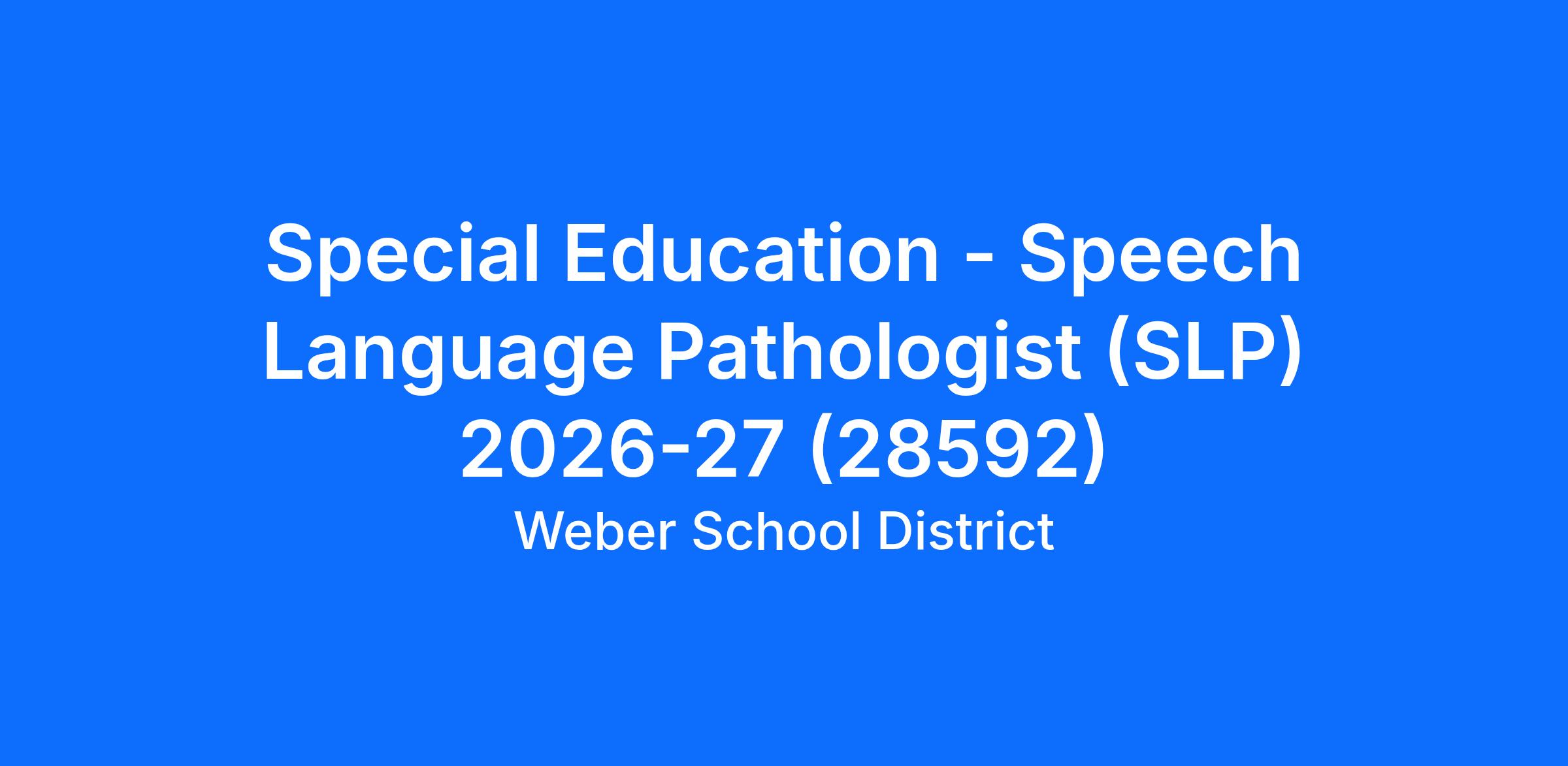 A position has been declared open in the Weber School District for a Speech Language Pathologist (SLP). This position is for 8.00 hours a day, 182 days (9 months) per year, is compensated according to the Educator Salary Schedule, and is eligible for benefits. The incumbent may work at more than one location; as such, limited daily travel may be required.