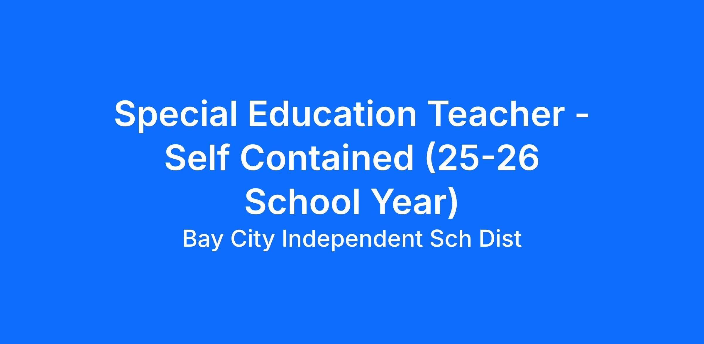 Job Title: Special Education Teacher - Self Contained