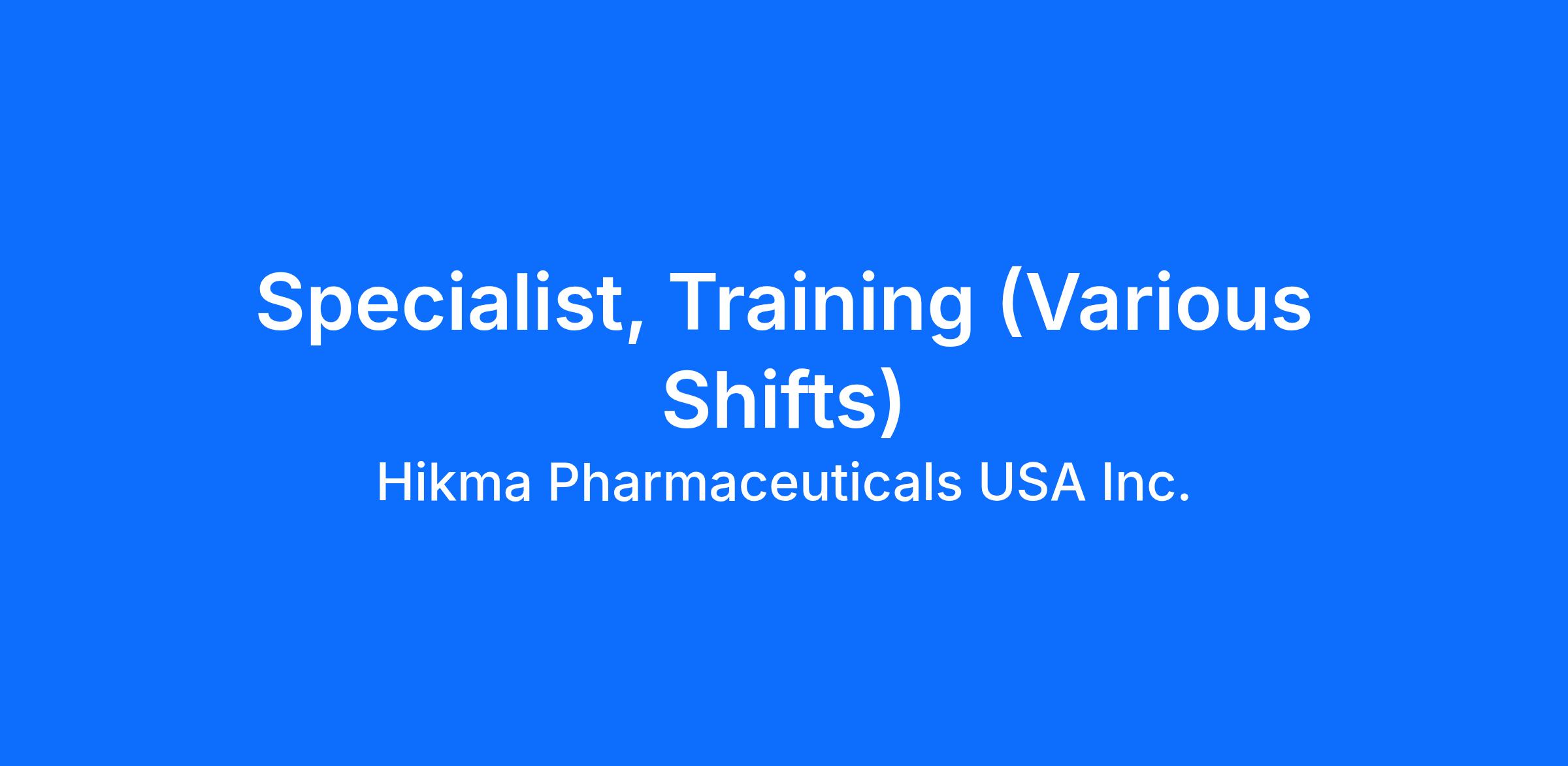 Job Title: Specialist, Training