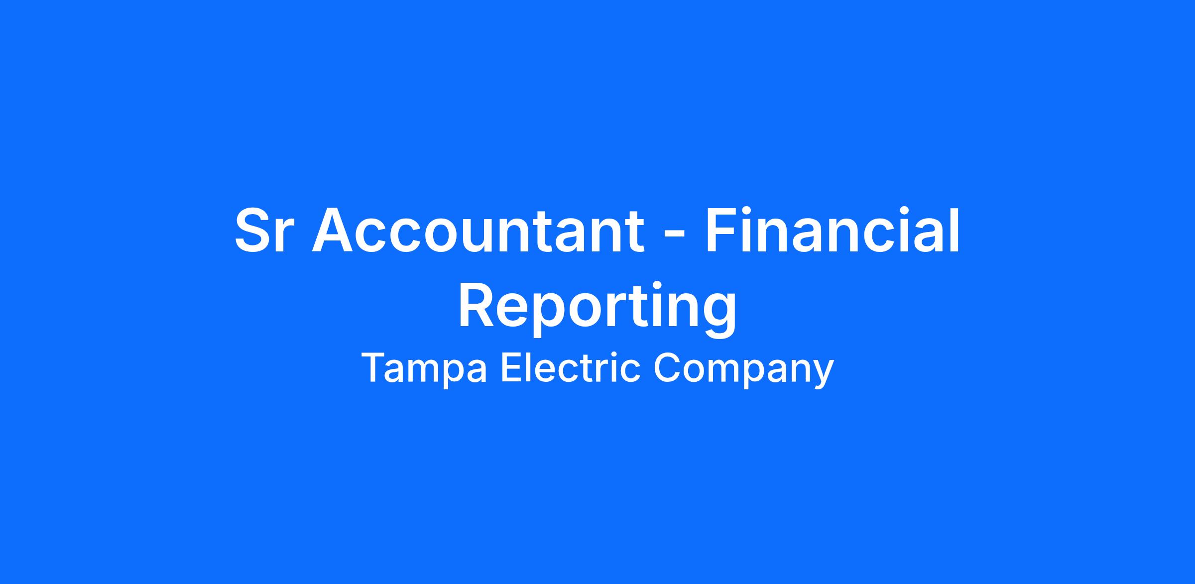The Sr Accountant - Financial Reporting is responsible for the coordination, preparation, documentation and analytical review of Tampa Electric Company’s external financial reporting, including SEC filings (Forms 10-Q, 10-K, and 8-K) and parent company financial documents. Provides technical support for corporate accounting and financial reporting groups and assumes responsibility for certain ongoing corporate accounting activities, including accounting for long-term debt and the injuries and damages reserve. Serves as the primary liaison with external auditors.
