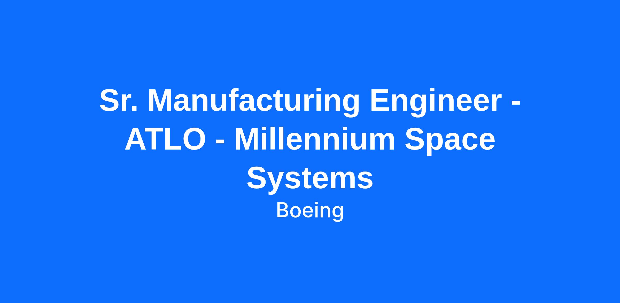 The Boeing CompanyMillennium Space Systems, A Boeing Company delivers affordable, high-performance space systems for exacting customers. At Millennium, you will be part of a close-knit team working on exciting technological problems. We work in an open environment where ideas are shared across all disciplines, and there are ample opportunities for advancement based on excellence. Superstars are welcome.