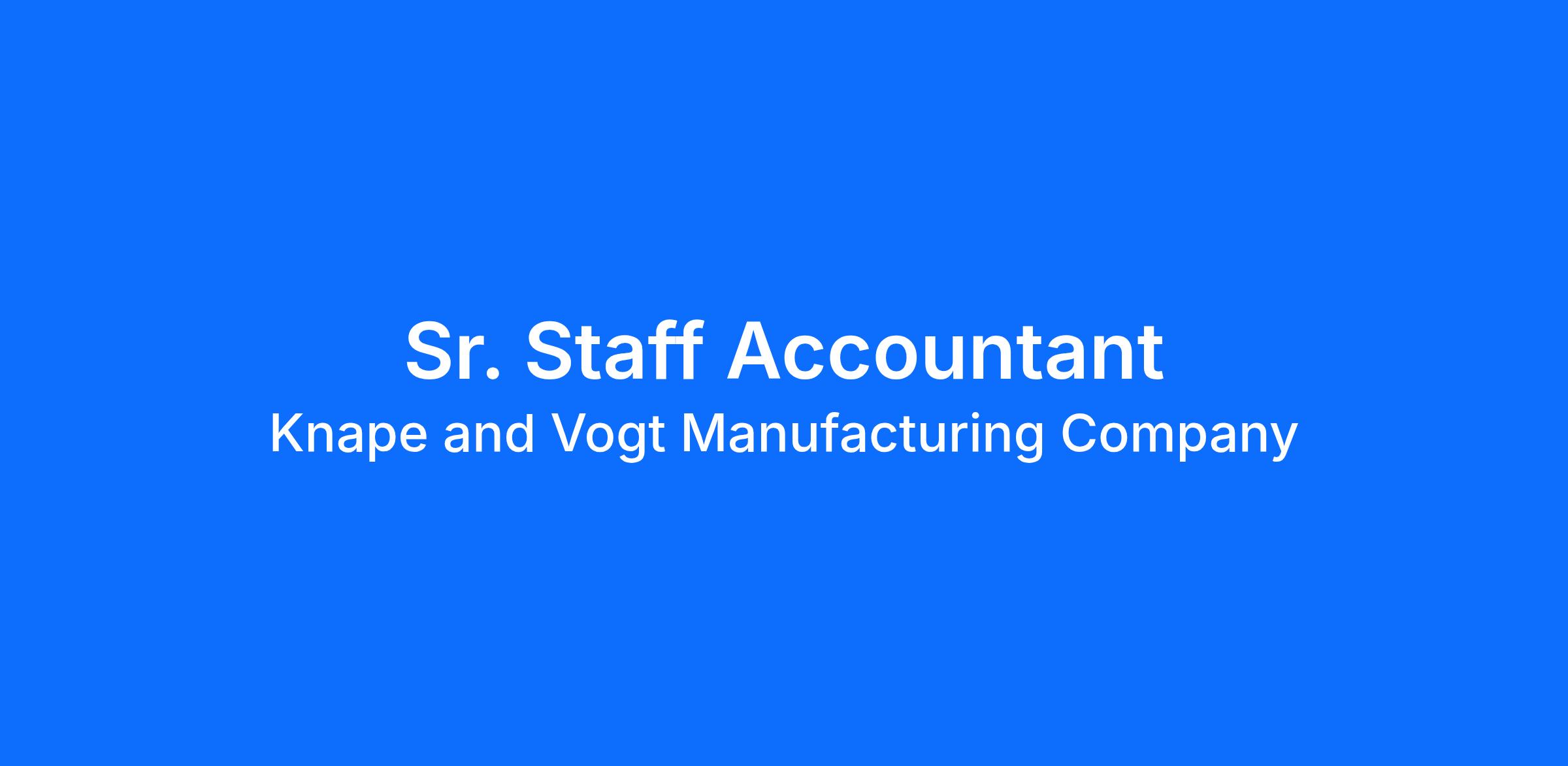 Are you an experienced Accountant looking for a new opportunity? Knape & Vogt is looking for a Sr. Staff Accountant to join our industry leading team! Enjoy excellent pay and incentives at a company where your skills will be recognized and rewarded!