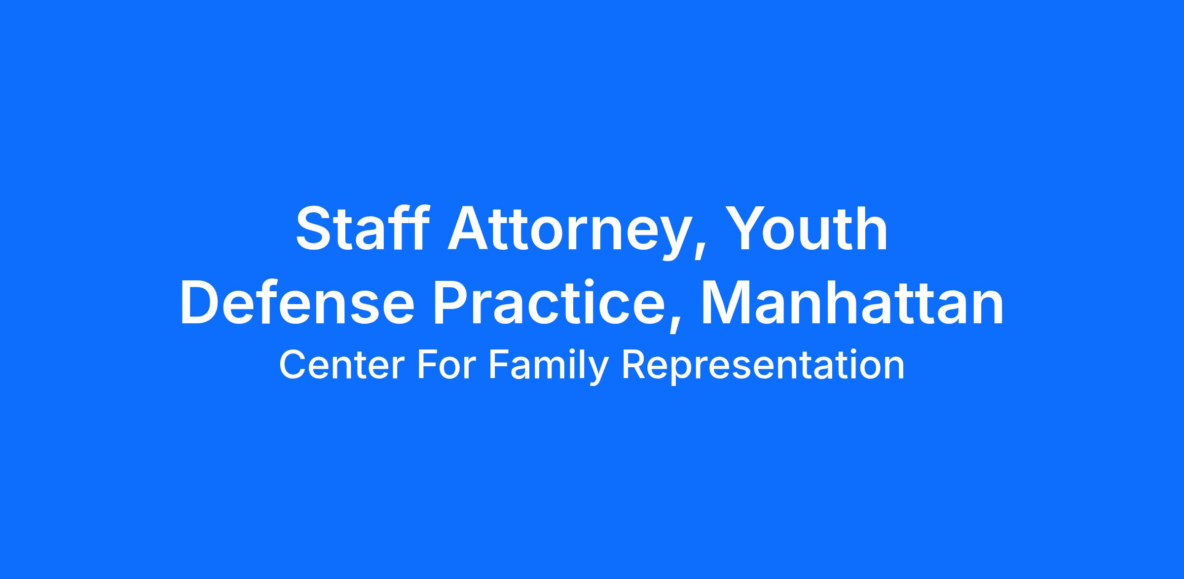 CFR has an immediate opening for a Staff Attorney in its Youth Defense Practice (YDP) in Manhattan.
