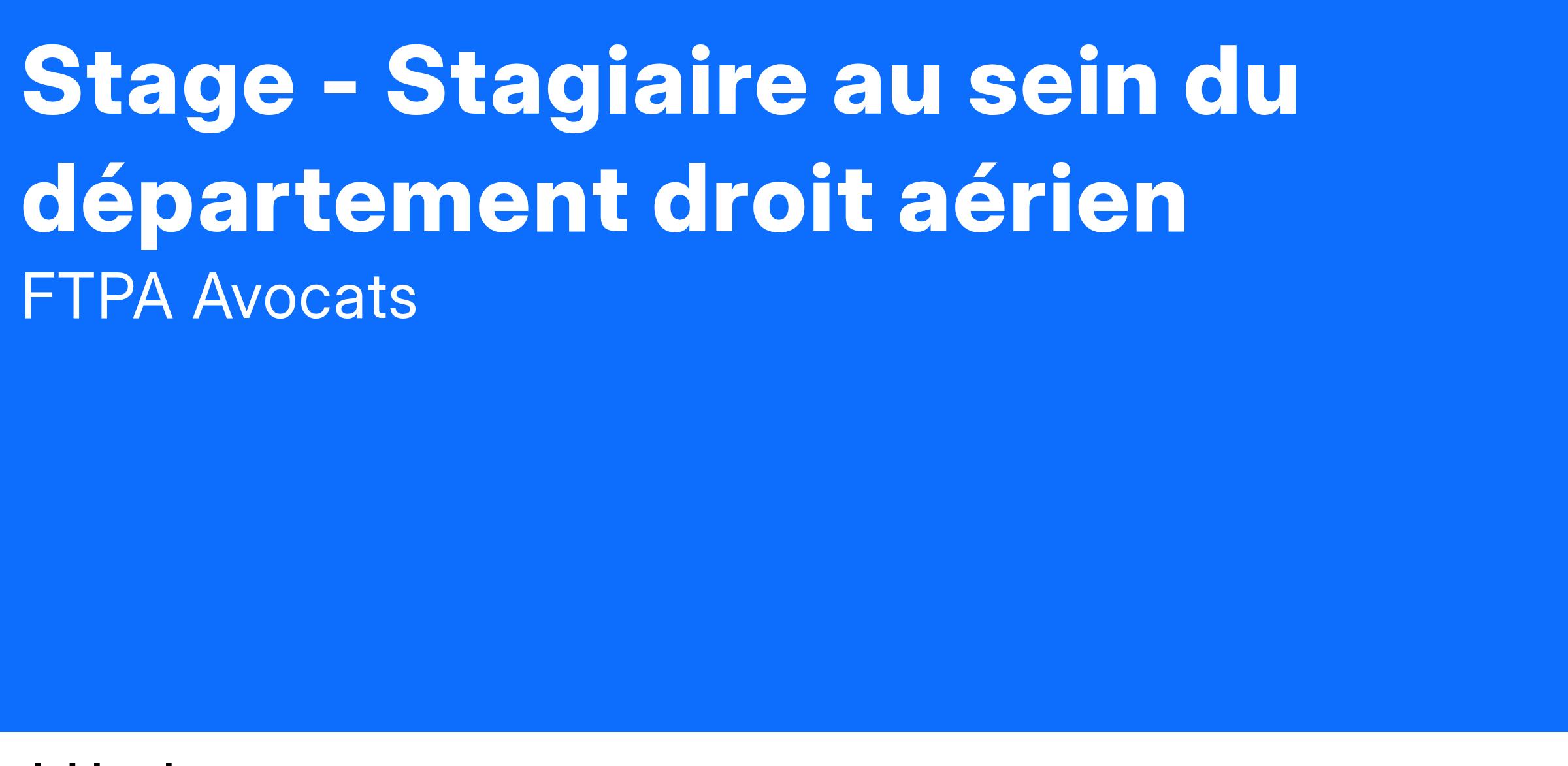 Stage - Stagiaire au sein du département droit aérien