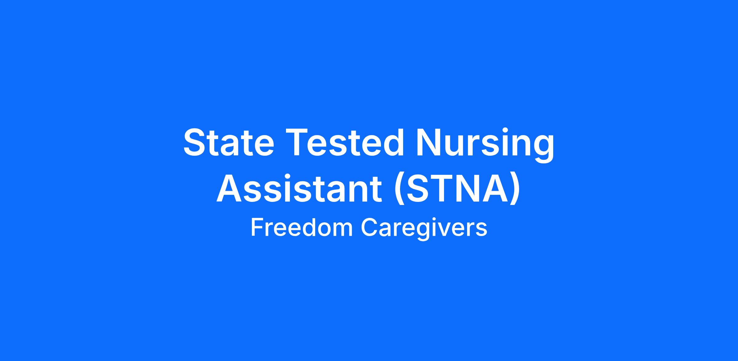 Join Freedom Caregivers and start a meaningful career in healthcare! We provide on-the-job training and opportunities to grow your skills while making a real difference in the lives of others. Whether you are new to healthcare or an experienced STNA, we want you on our team.