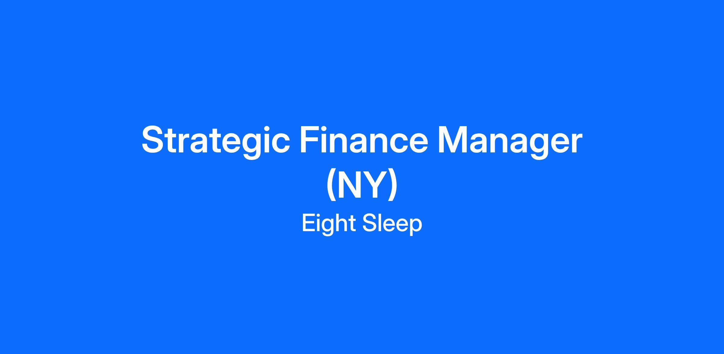 We are looking for a Strategic Finance Manager to join our Finance team. This is a highly visible and hands-on role, responsible for owning financial planning, forecasting, and reporting. You will partner closely with leadership across Eight Sleep to shape strategy and identify opportunities for growth and efficiency.