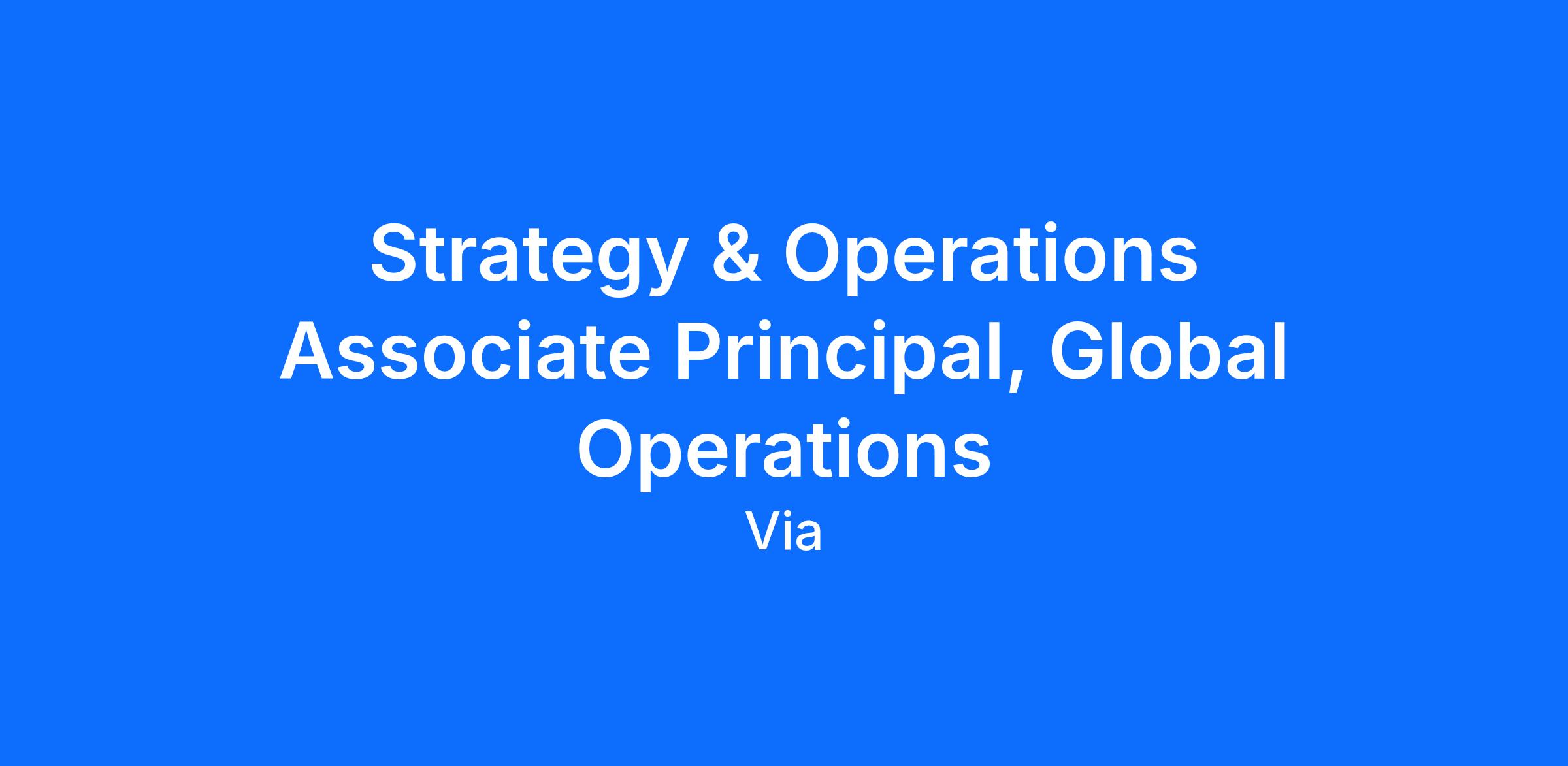 As a Strategy & Operations Associate Principal, you will join the Global Operations team and lead a diverse array of projects directly impacting Via’s operations. You will set strategy, develop partnerships, lead end-to-end projects, and own outcomes across financial and operational analyses, process improvement, new product development and launch, and more. You will work across Via’s business portfolio to drive continuous improvement and innovation in transit services around the world.