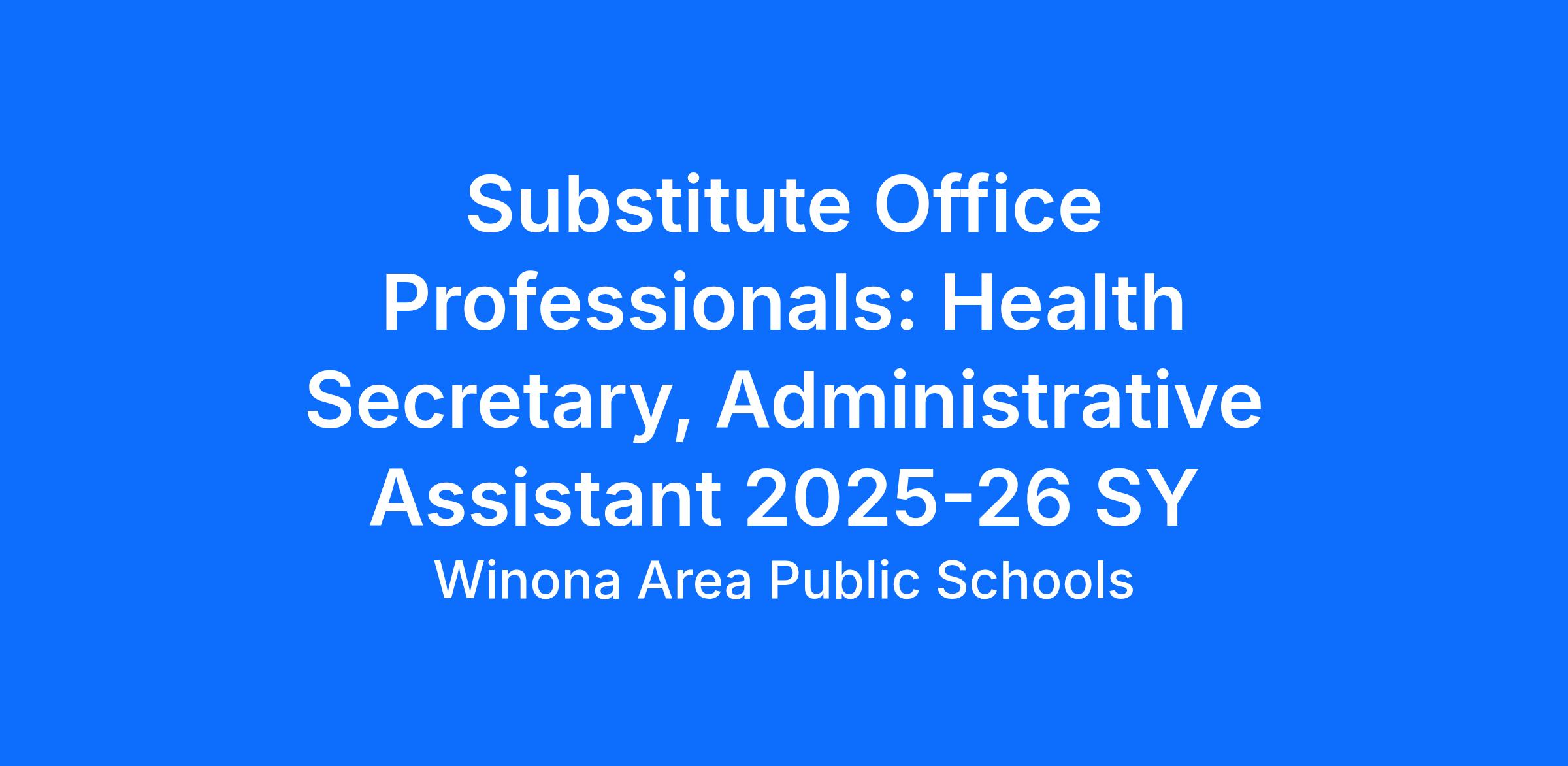 Assignment Specifications: On-Call; Winona Area Public Schools continuously accepts online applications for prospective substitute Office Professional, Administrative Assistant and Health Secretary to sub within the district. Applications will be reviewed as needed.