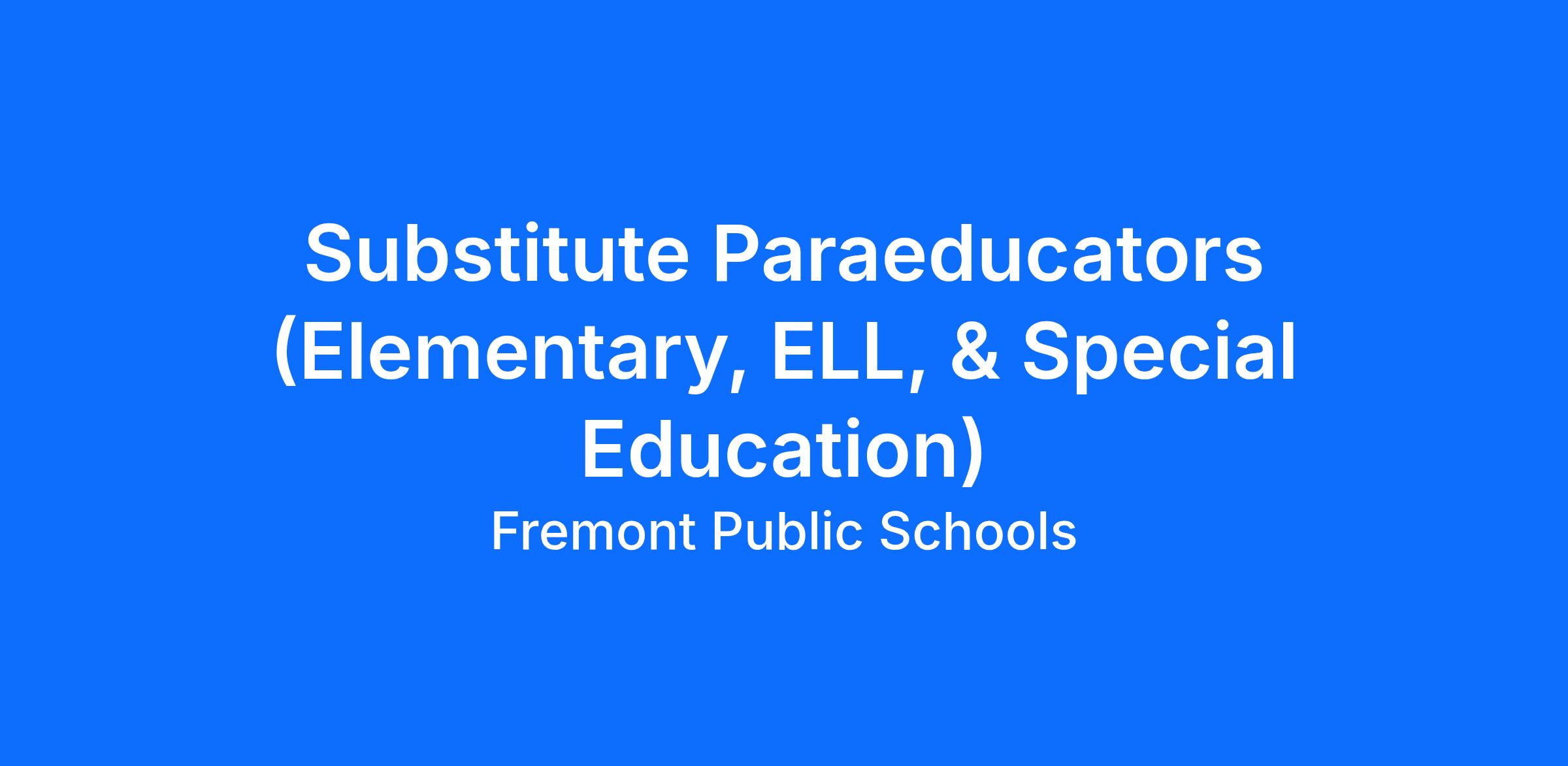 Application Procedure: Interested are invited to apply online at fremonttigers.org. Click on Employment and follow application instructions. Applications are always welcome.