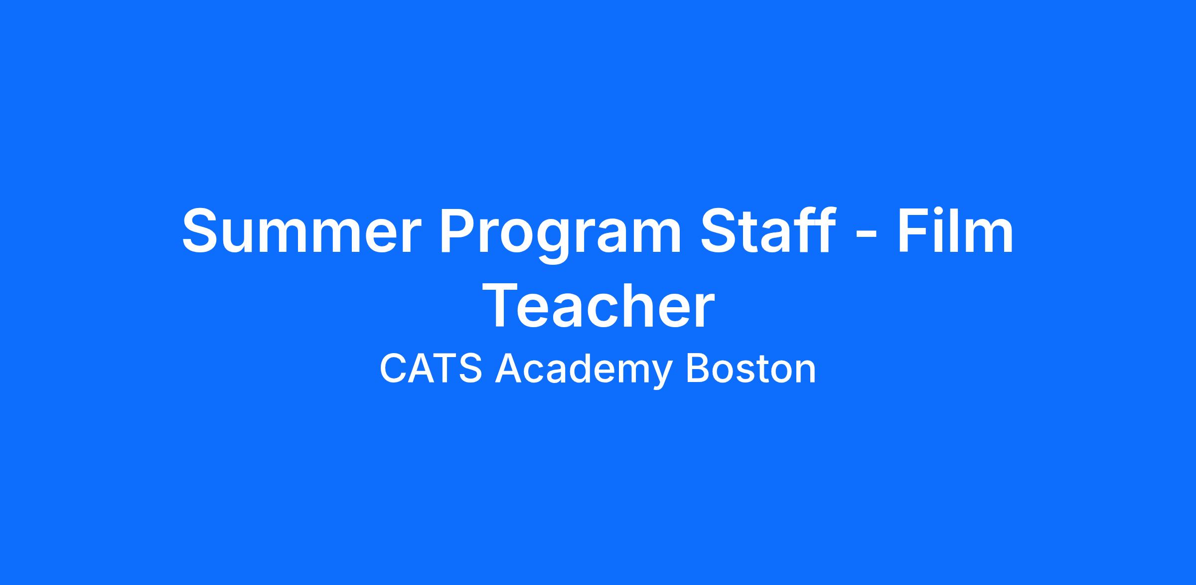 Summer School Film Teachers are welcomed into our professional teaching team at Stafford House Study Holidays which is hosted by our state-of-the-art CATS Academy Boston high school located in Braintree, MA. Our Study Holidays welcome a diverse mix of young, international students from overseas, (aged 10-18) giving you the opportunity to teach in a multicultural environment.