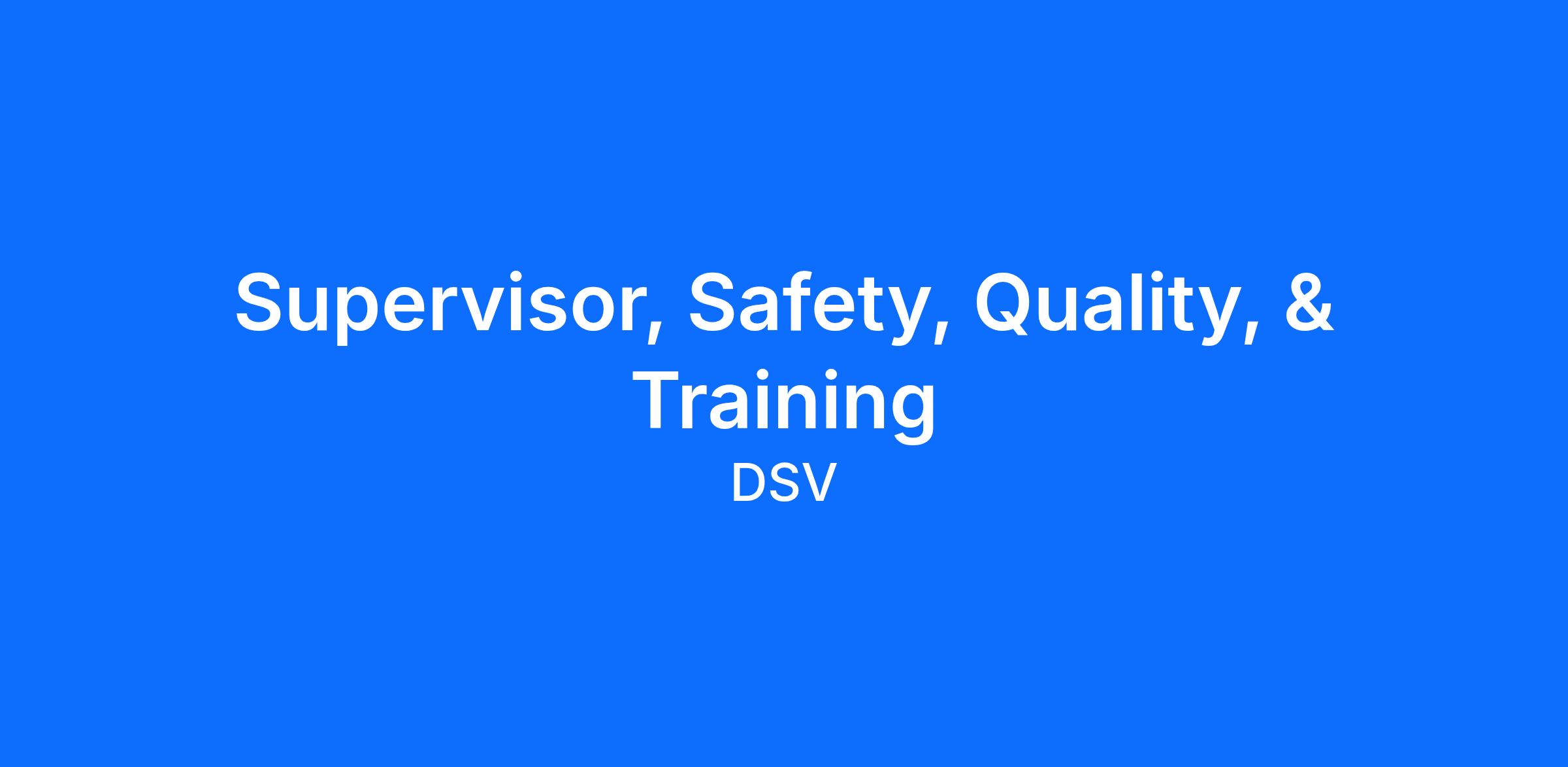 Job Posting Title: Supervisor, Safety, Quality, & Training - 109730