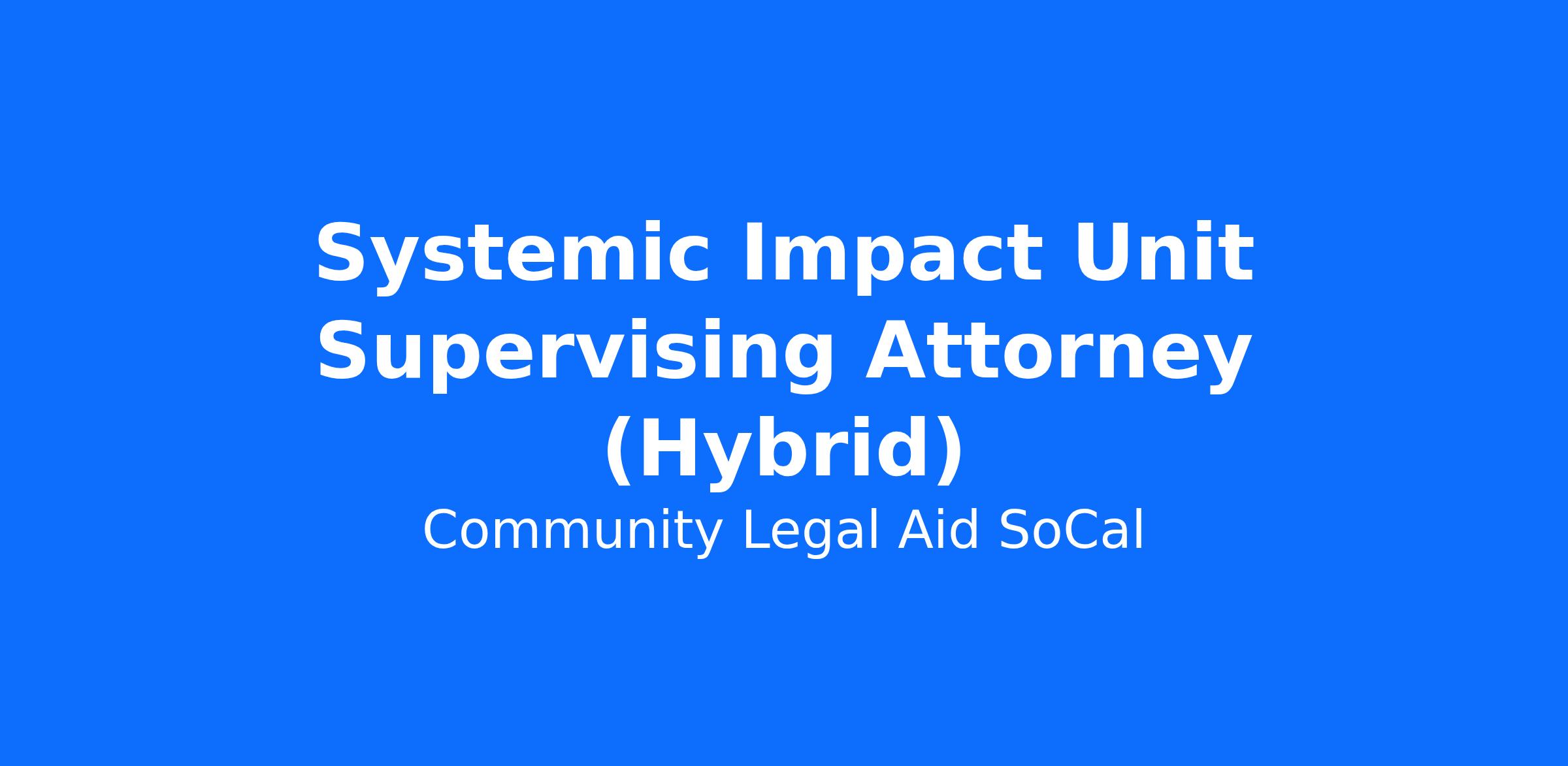 The Supervising Attorney of the Systemic Impact Unit (SIU) will supervise the impact advocacy of CLA SoCal and our team of staff attorneys and paralegal. This full-time, hybrid, exempt position reports to the Director of Legal Services and can be based in any of our three offices: Compton, Norwalk, or Santa Ana. SIU seeks to effect meaningful social and legal change that benefits vulnerable low-income and historically marginalized communities in southeast Los Angeles and Orange Counties. SIU uses an array of tools–writs, appeals, impact litigation, and policy advocacy–to achieve the best possible outcomes for our client communities.