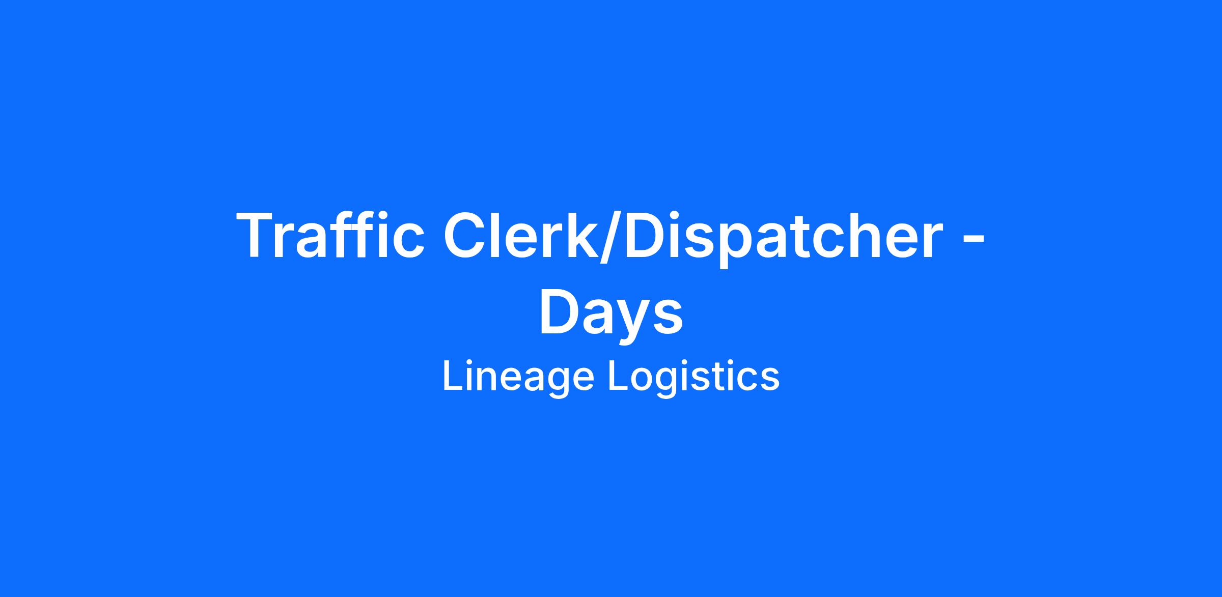 Position: Traffic Clerk/Dispatcher
