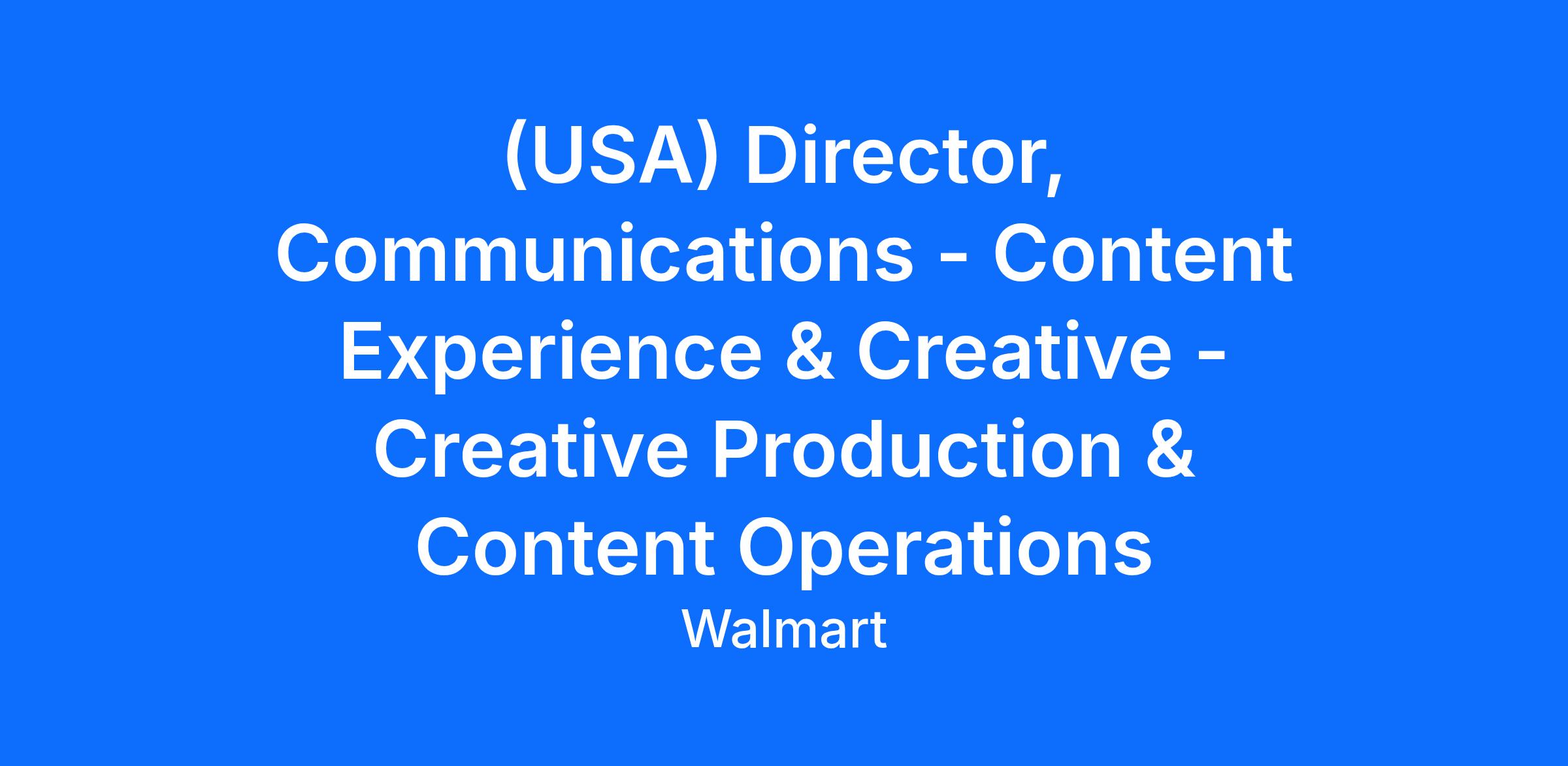 (USA) Director, Communications - Content Experience & Creative - Creative Production & Content Operations