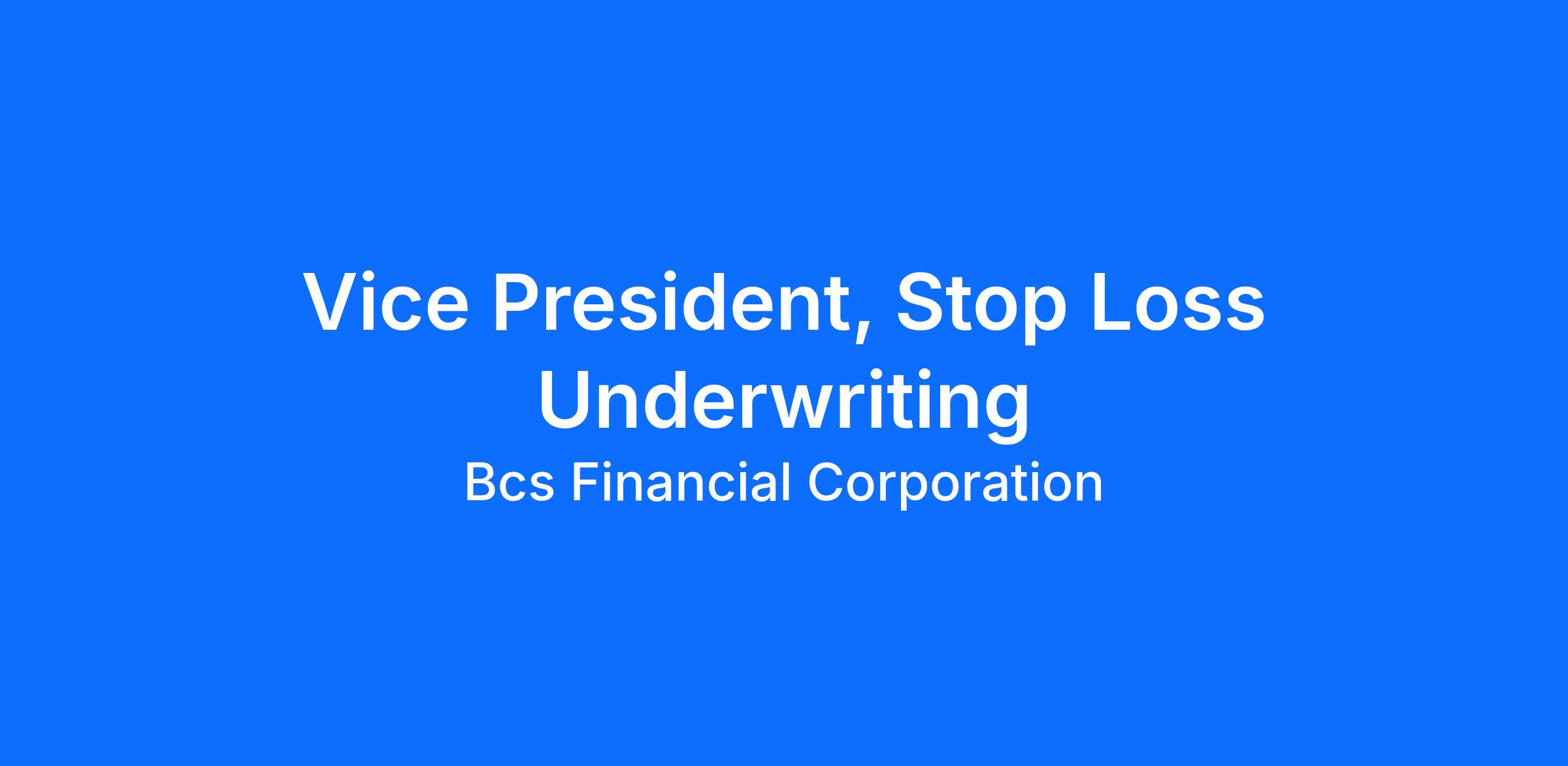 The Vice President, Stop Loss Underwriting is a leadership role responsible for shaping and executing the underwriting strategy for BCS’ Stop Loss business, part of BCS’ Large Claims Solutions suite of products. This position oversees the underwriting team, ensuring best-in-class practices that drive profitability measured by consistent pricing and risk evaluation, achieving growth targets, and collaborating for operational efficiencies. They also play a key role representing underwriting across sales, actuarial, claims product, brokers, and senior leadership.